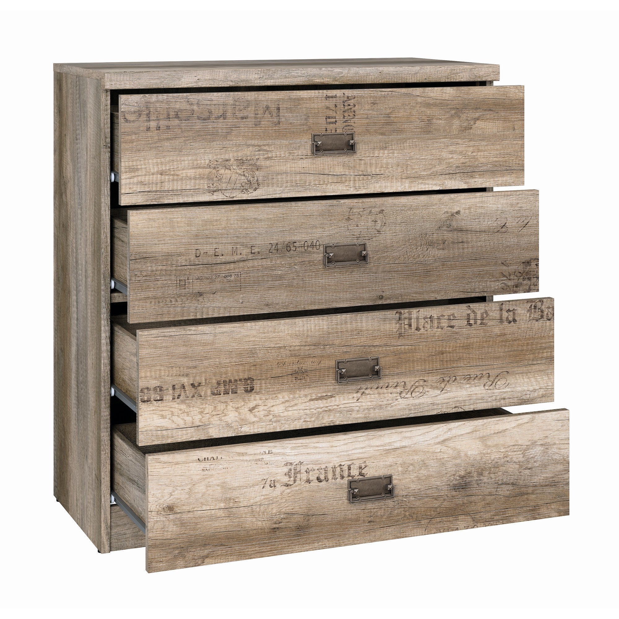 Deoarece aceste comode 80 cm Malcolm ies in evidenta datorita frontului tiparit, astfel veti avea o camera moderna si interesanta.​ Comoda modernă Malcolm, conține patru sertare spațioase cu mânere deosebite. Colecția Malcolm este special realizată pentru camera de tineret, deoarece crează perfect locul pentru studiu și relaxare.