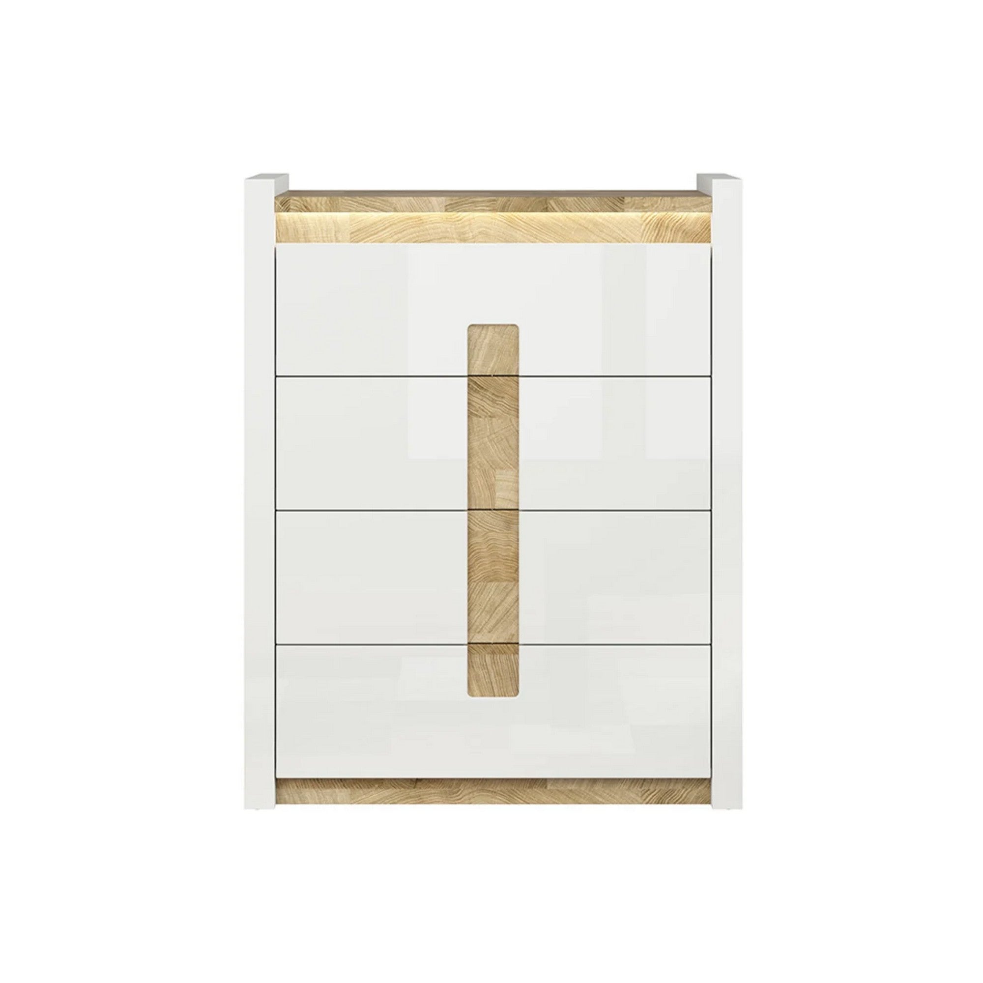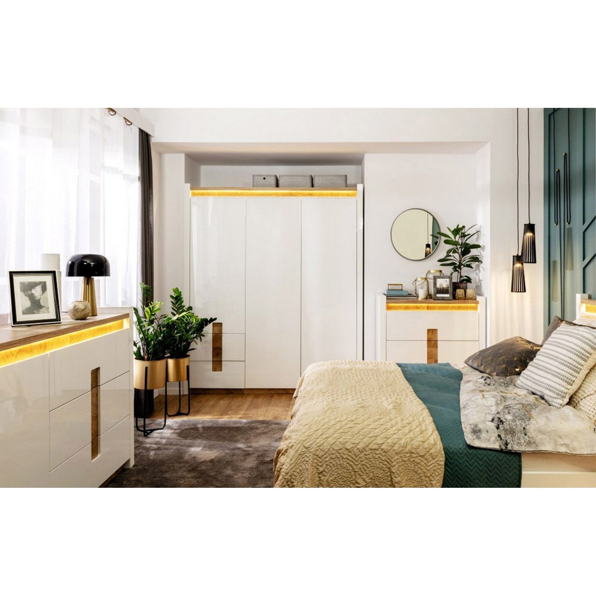 Comoda Alameda, alb/stejar, PAL, cu iluminare LED, 97x41.5x123 cm