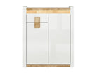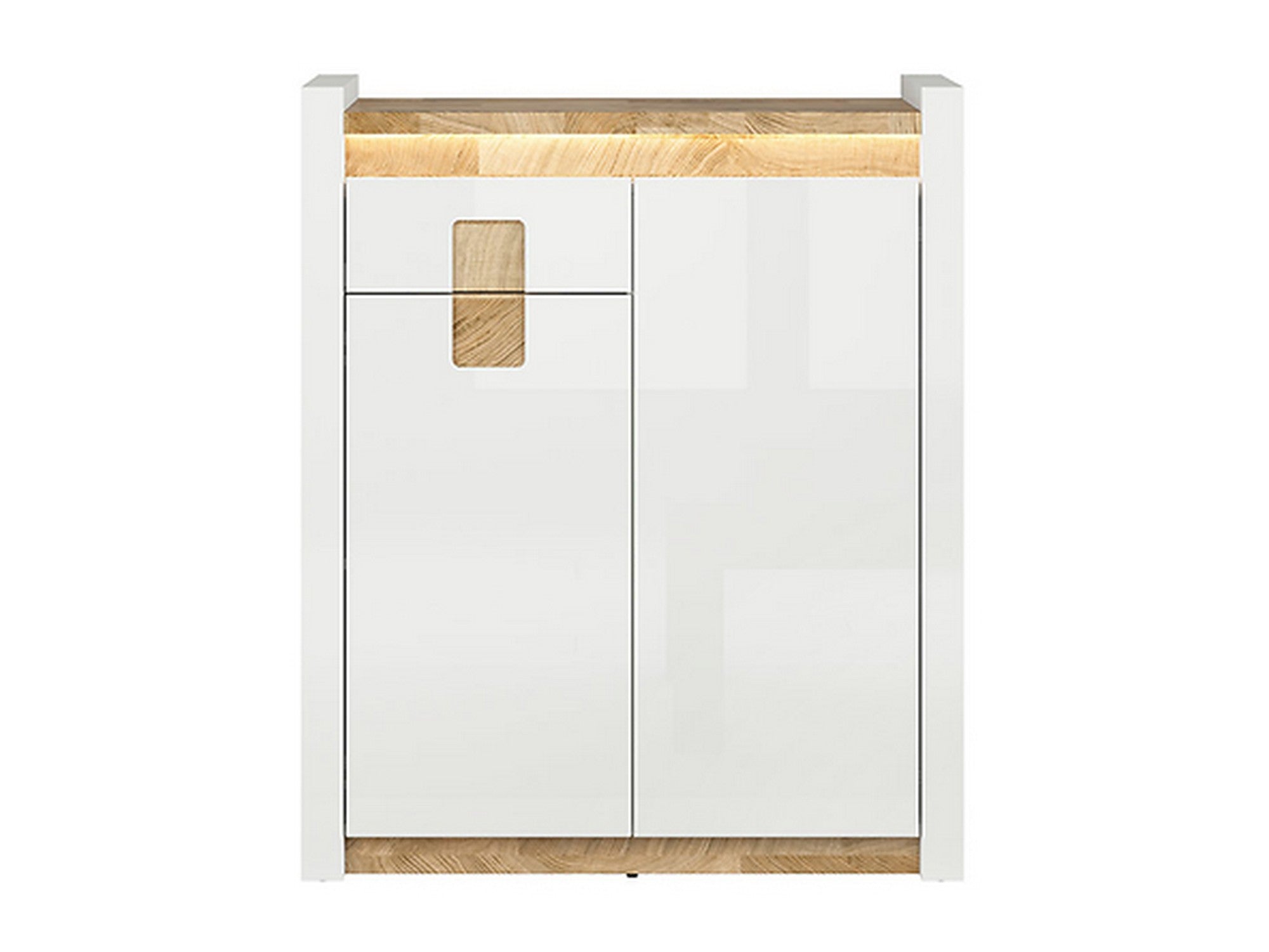 Aceasta comoda va deveni parte din camera ta de zi. Blatul lung vă va permite să plasați televizorul pe el și puteți plasa alte echipamente pe cele două rafturi. Ajutor în organizarea obiectelor mici va fi oferit de cele trei sertare compacte.
