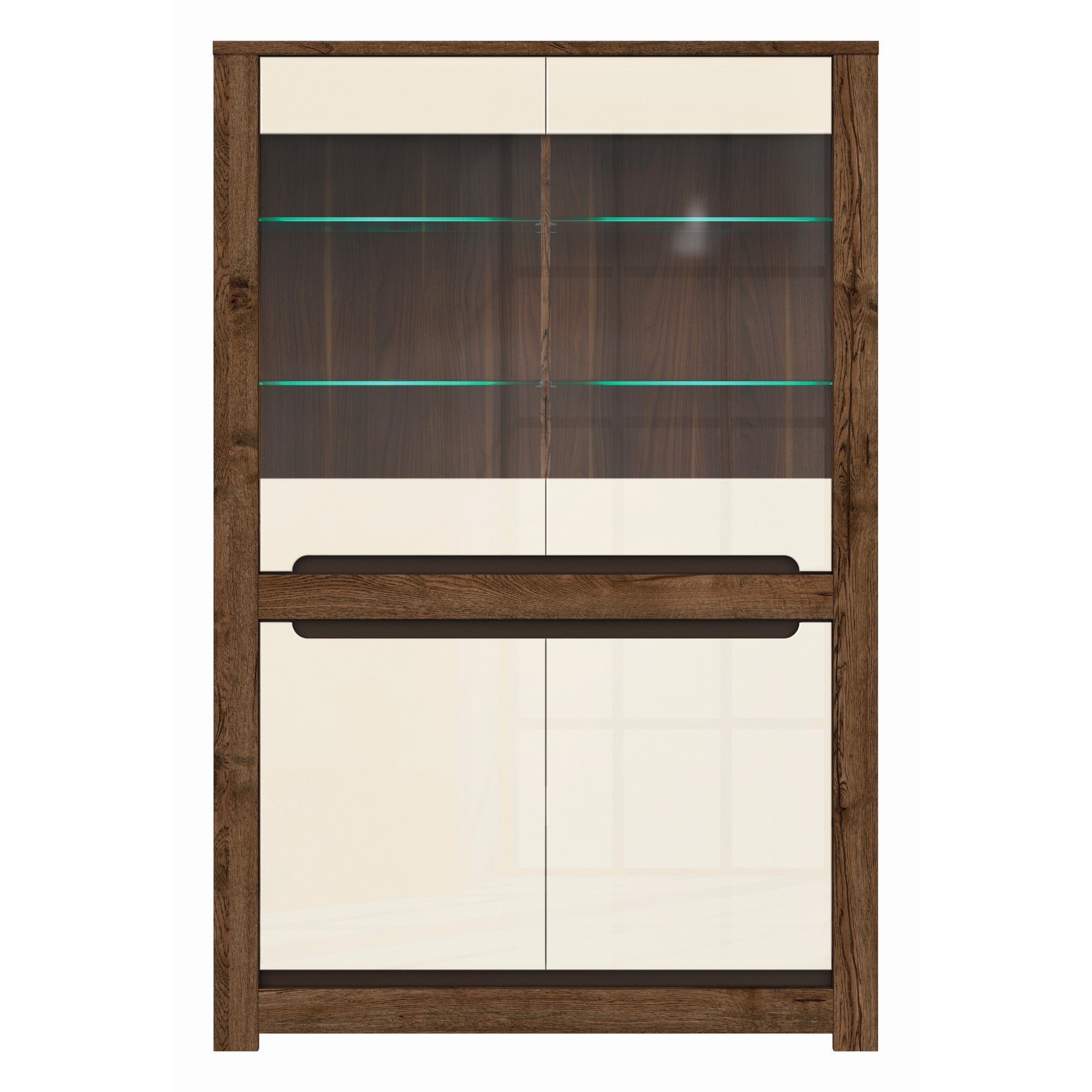 Comoda cu vitrina Ruso, stejar april/perla lucioasa, 104x158,5x45,5 cm