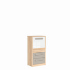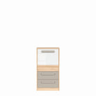 • culoarea comodei este fag iconic, fronturile sertarelor sunt de culoare gri si frontul rafturilor este de culoare alb lucios