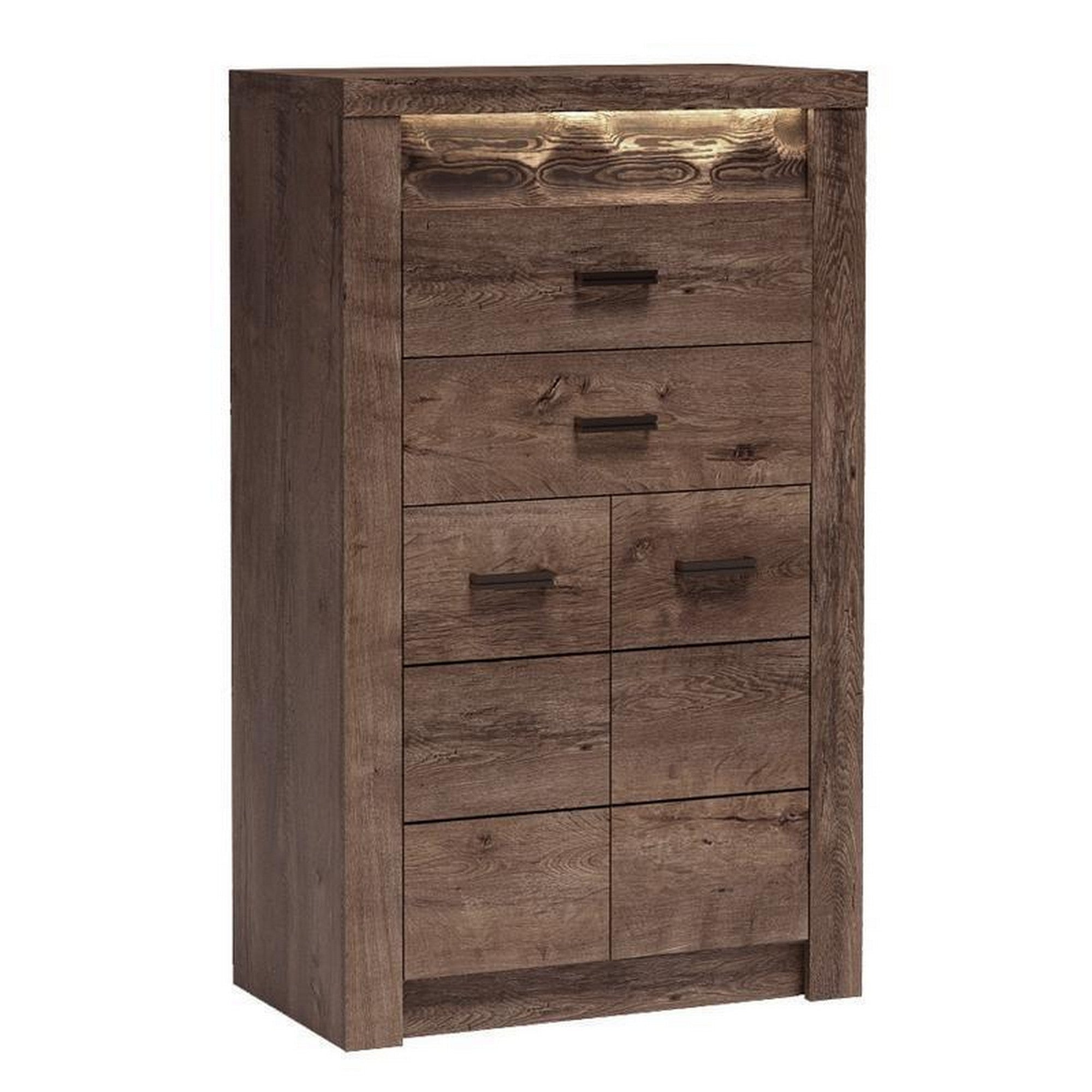 Comoda INDIANAPOLIS I6, frasin inchis, PAL laminat, cu 2 sertare, 2 usi si iluminare led, 76x42x127 cm