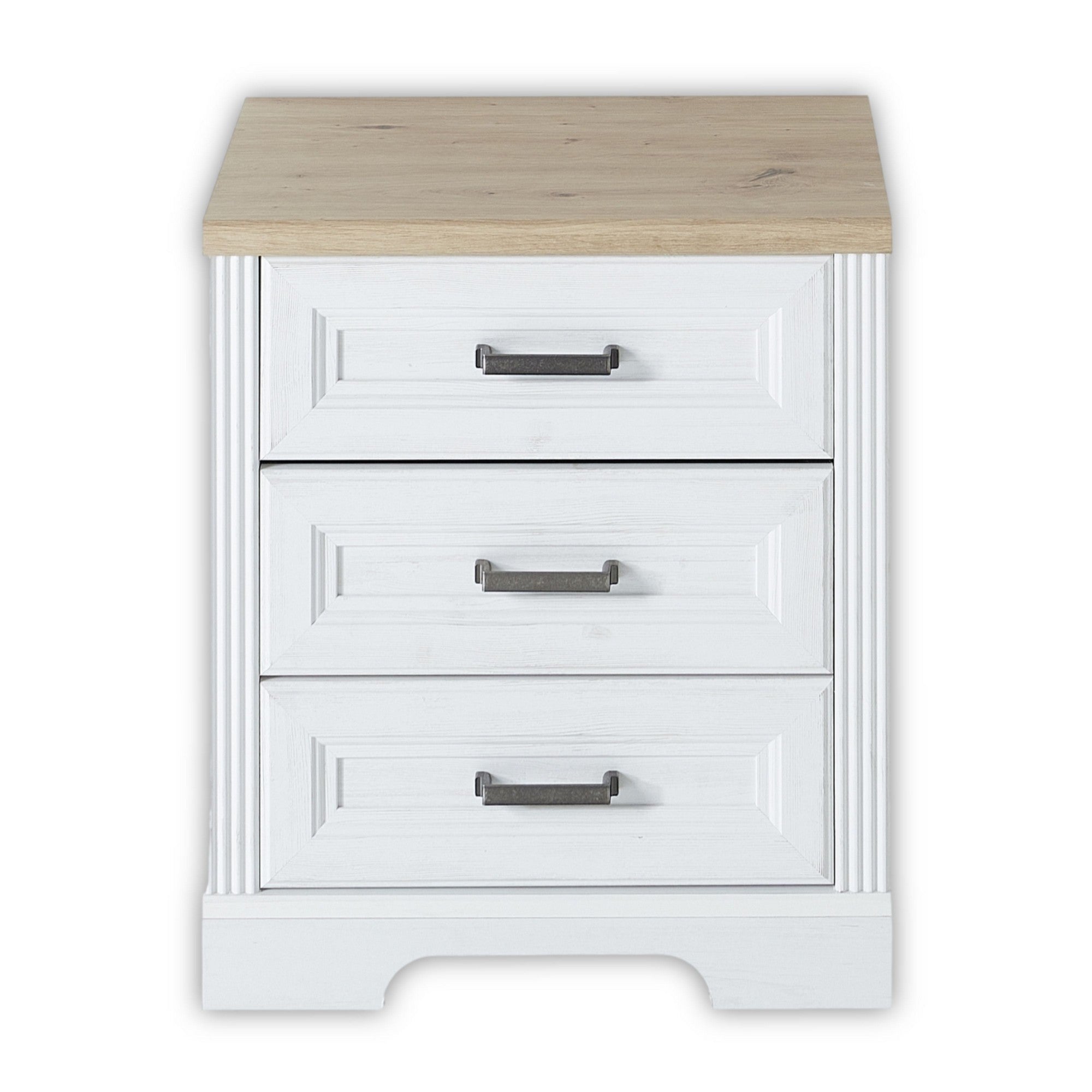 Comoda JASMIN, alb/stejar artisan, PAL, cu 3 sertare, 54x39x62 cm