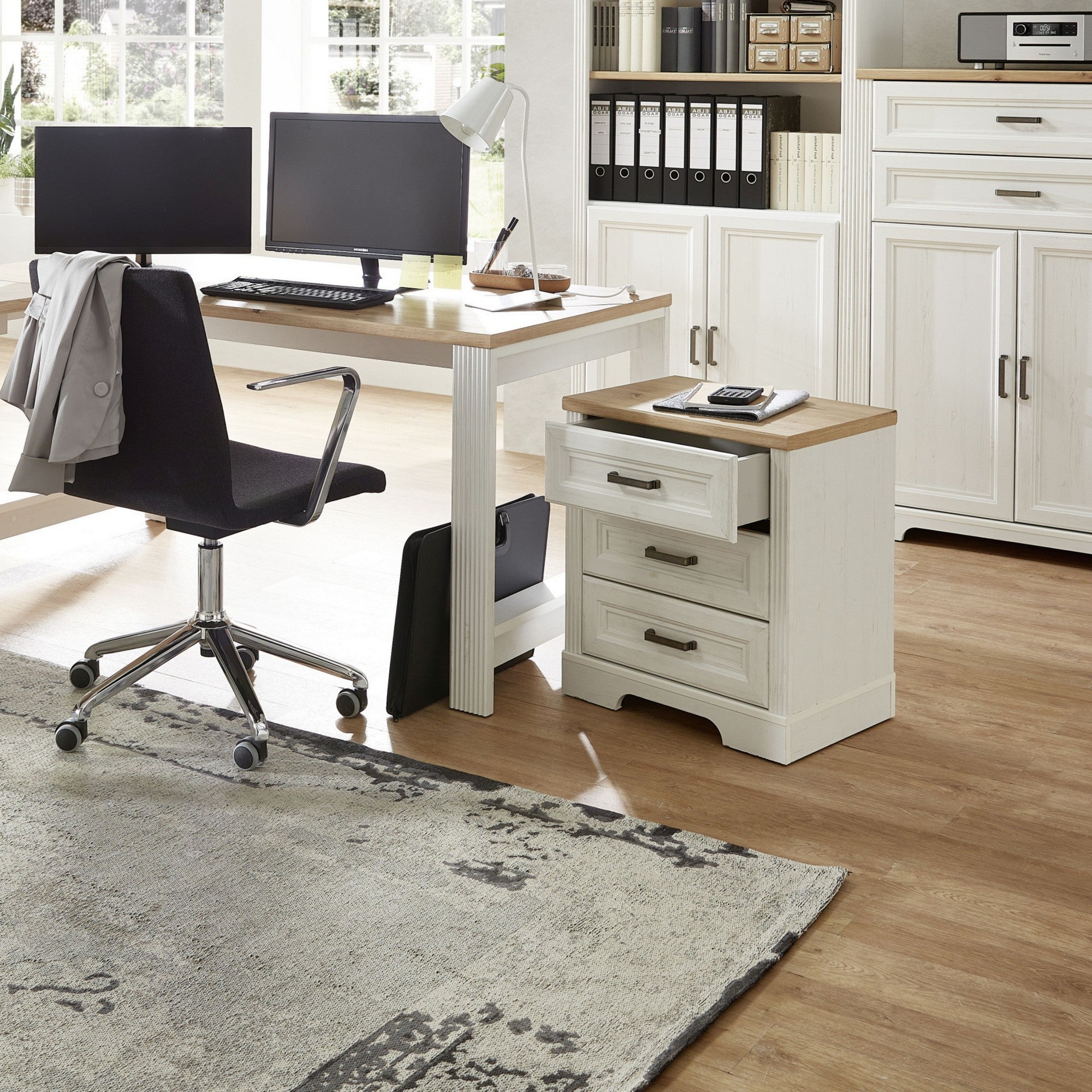 COMODA JASMIN, ALB/STEJAR ARTISAN, PAL, CU 3 SERTARE, 54X39X62 CM