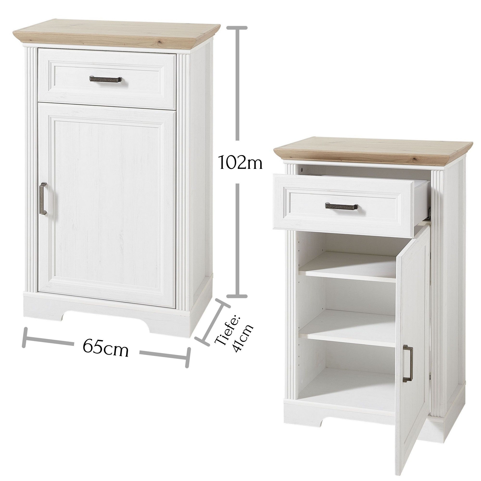 Comoda JASMIN, alb/stejar artisan, PAL, cu o usa si un sertar, 65x41x102 cm