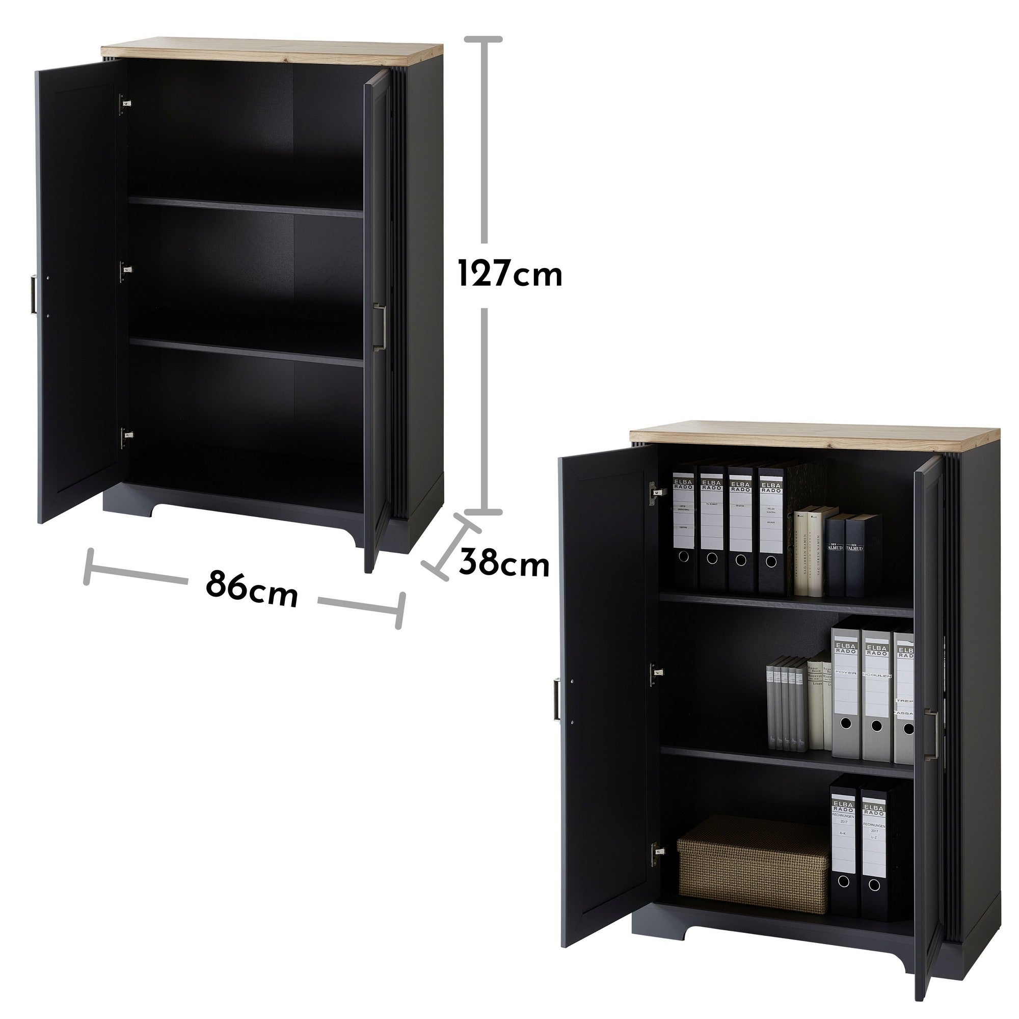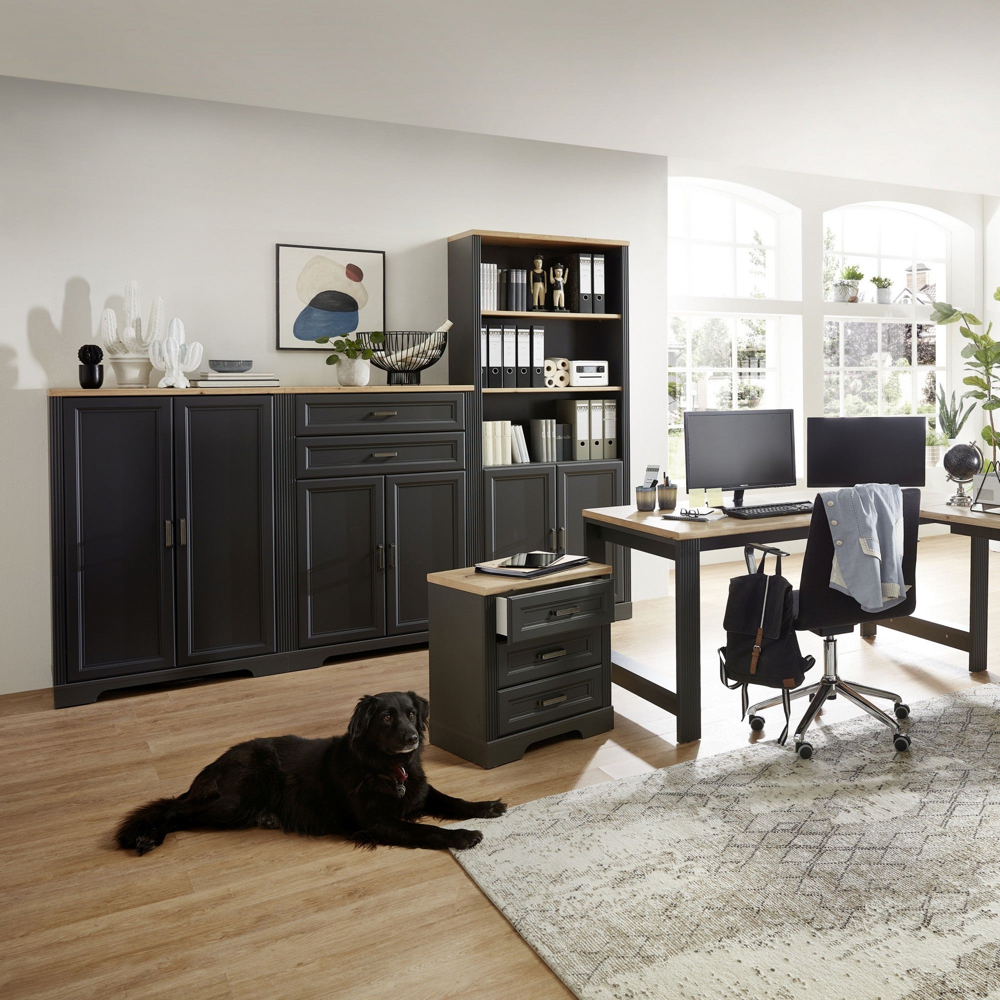COMODA JASMIN, GRI GRAFIT/STEJAR ARTISAN, PAL, 86X38X127 CM