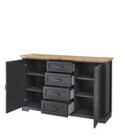 COMODA JASMIN, GRI GRAFIT/STEJAR ARTISAN, PAL, CU 2 USI SI 4 SERTARE, 165X41X102 CM
