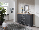 Comoda JASMIN, gri grafit/stejar artisan, PAL, cu 2 usi si 4 sertare, 165x41x102 cm