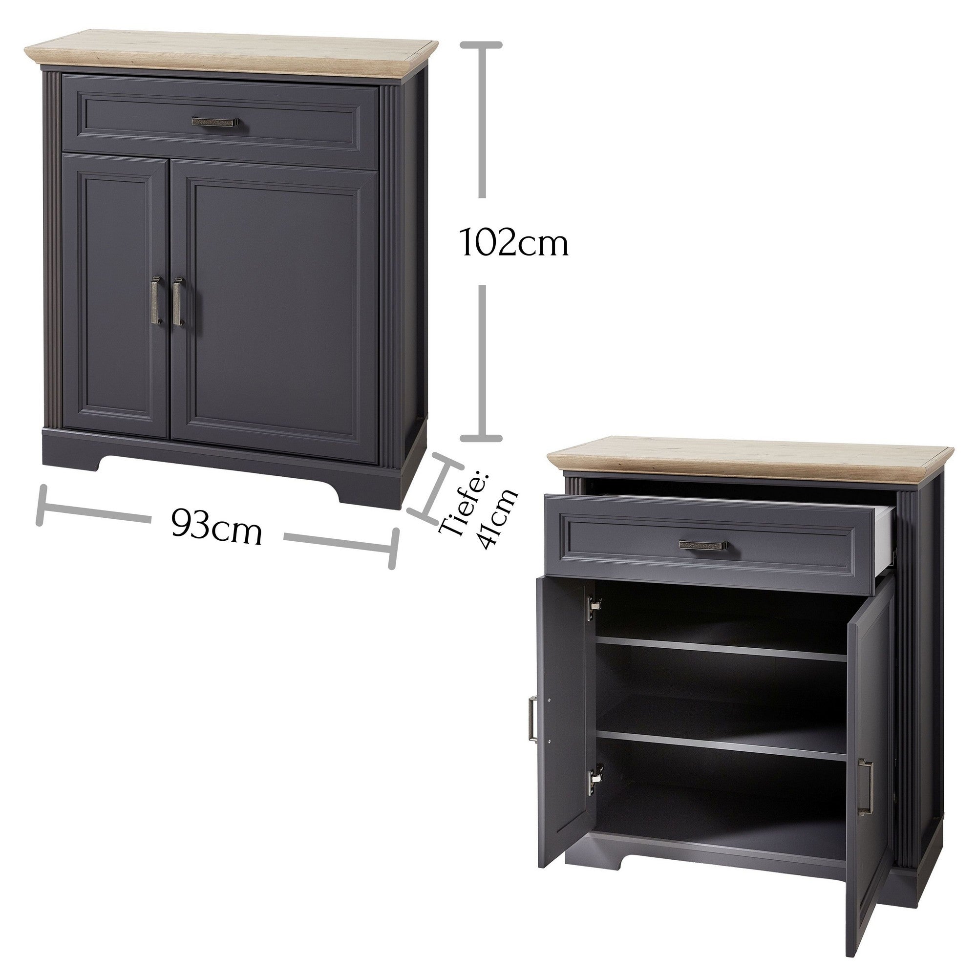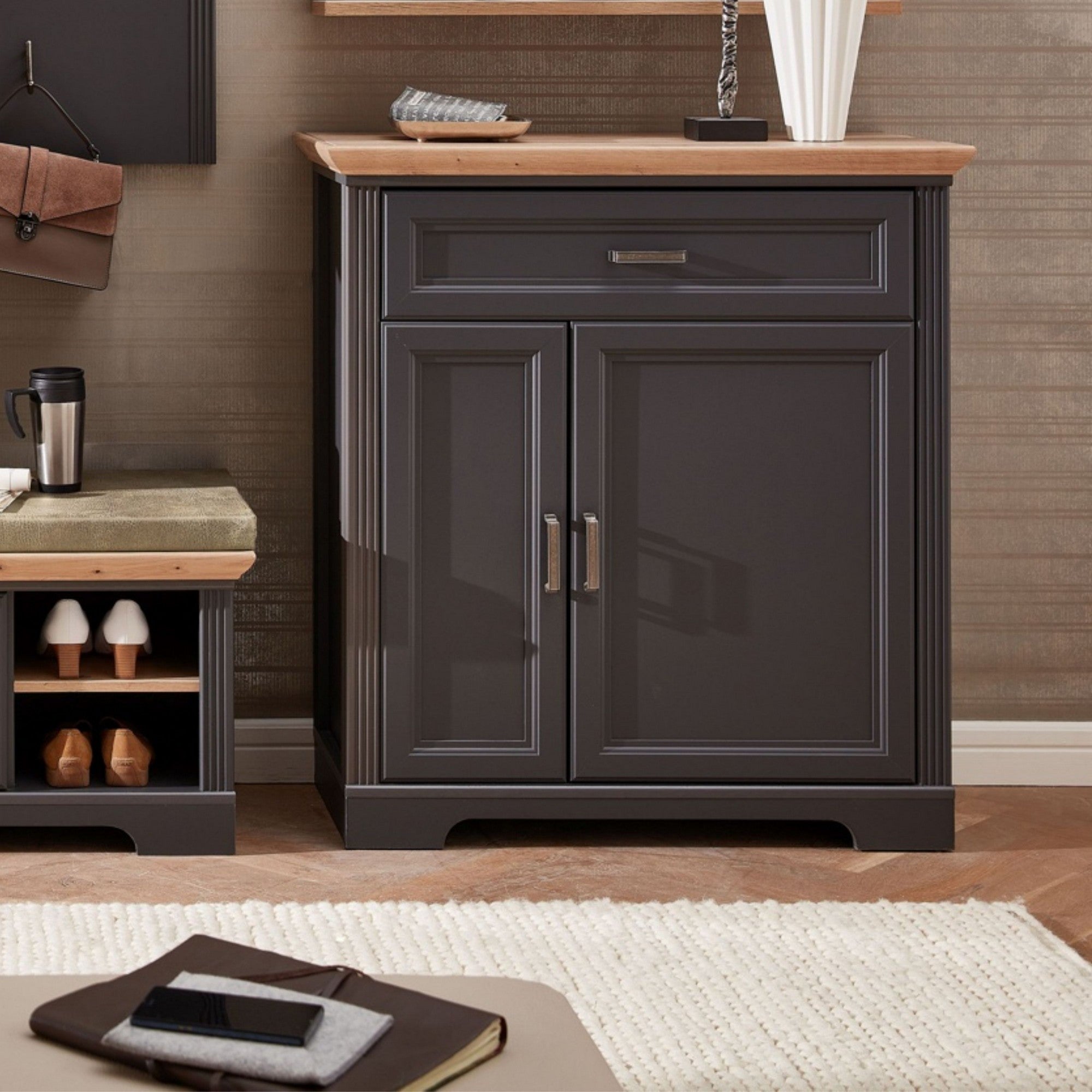 Comoda JASMIN, gri grafit/stejar artisan, PAL, cu 2 usi si un sertar, 93x41x102 cm