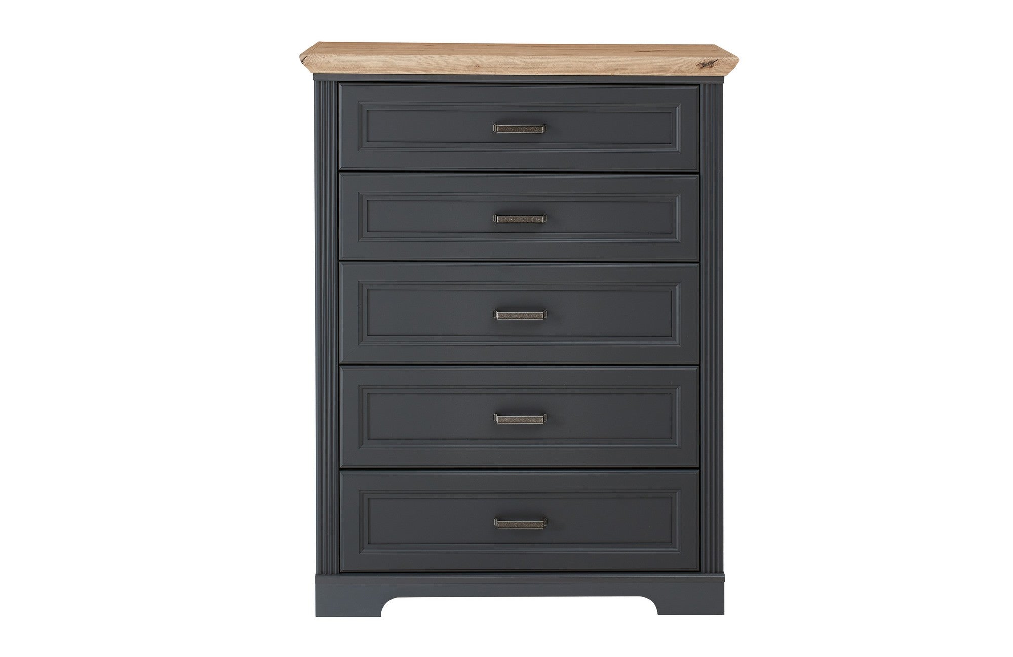 COMODA JASMIN, GRI GRAFIT/STEJAR ARTISAN, PAL, CU 5 SERTARE, 93X41X121 CM