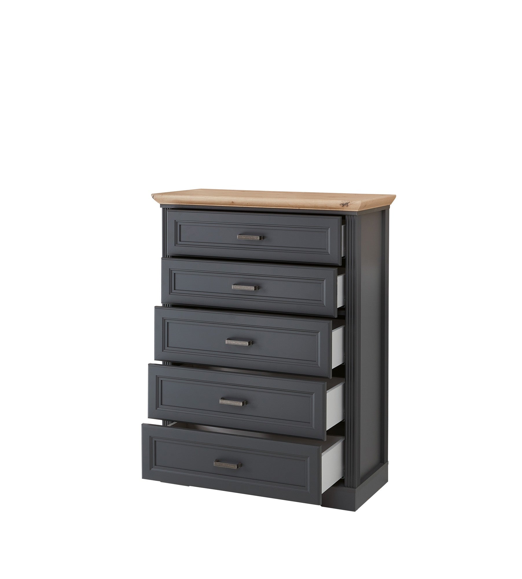 Comoda JASMIN, gri grafit/stejar artisan, PAL, cu 5 sertare, 93x41x121 cm