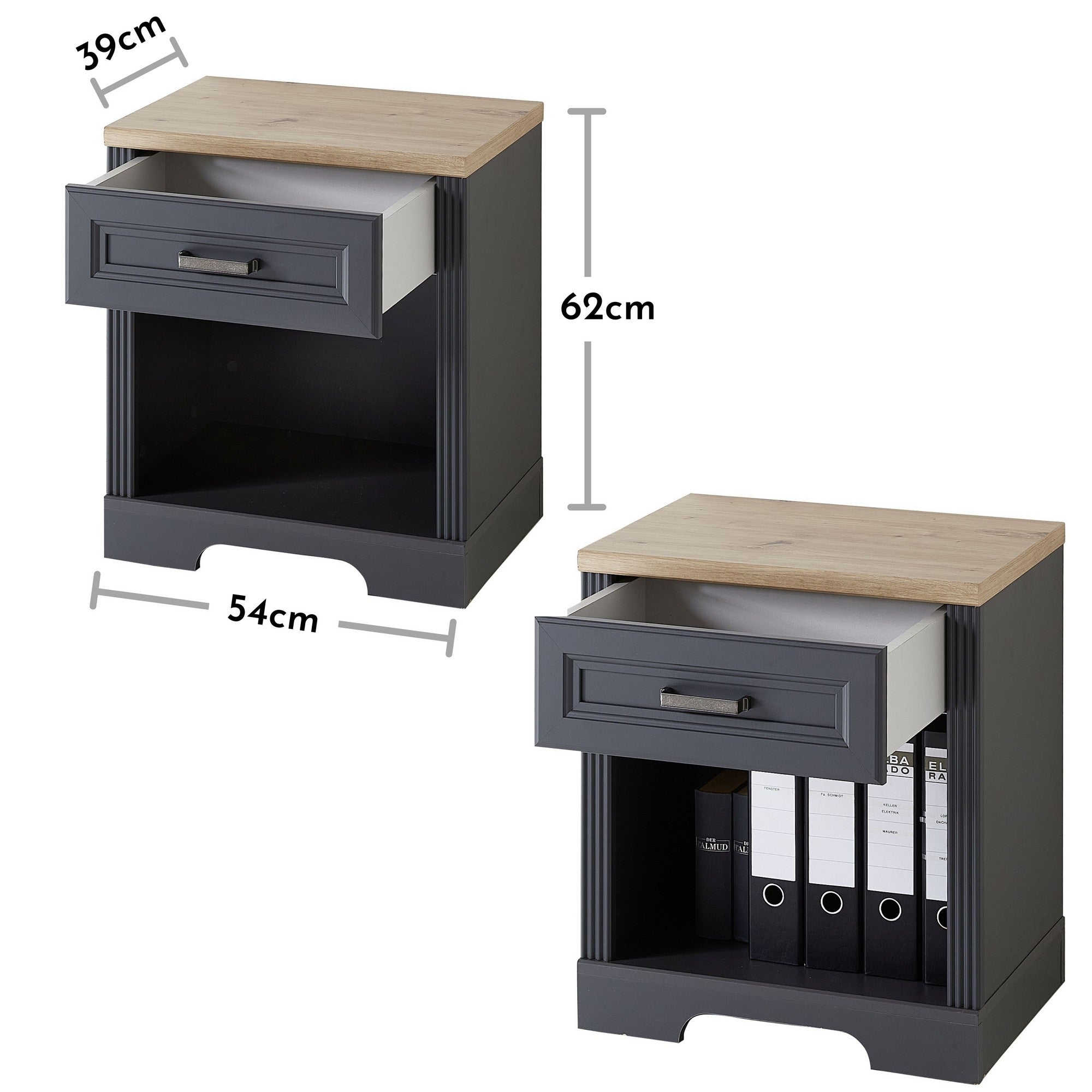 Comoda JASMIN, gri grafit/stejar artisan, PAL, cu un sertar, 54x39x62 cm