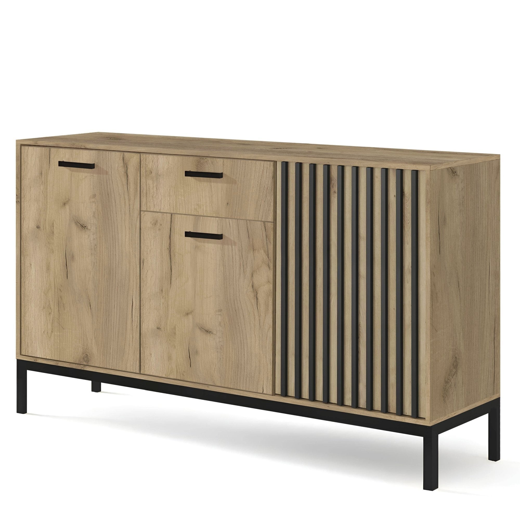 Comoda LAMINO KM-1, stejar/negru, PAL laminat/polipropilena, 154x40x84 cm