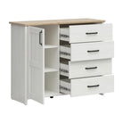 Comoda LOKSA, pin alb/stejar gandson, PAL laminat, 120x43x99 cm