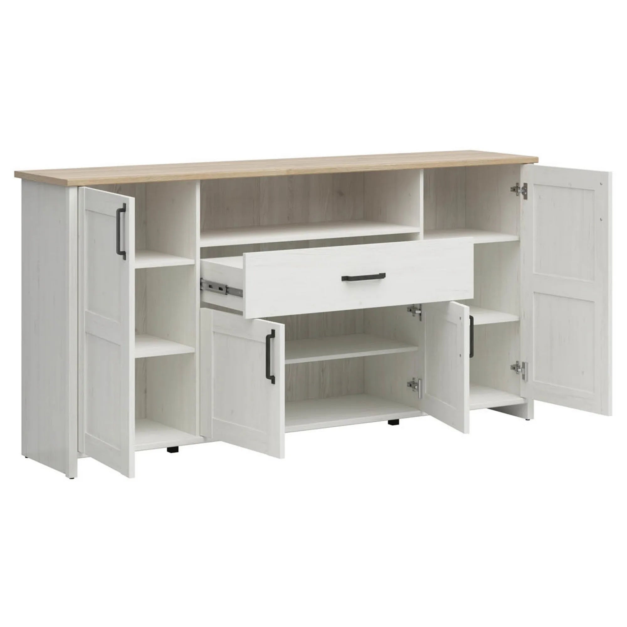Comoda LOKSA, pin alb/stejar grandson, PAL laminat, 194x43x99 cm