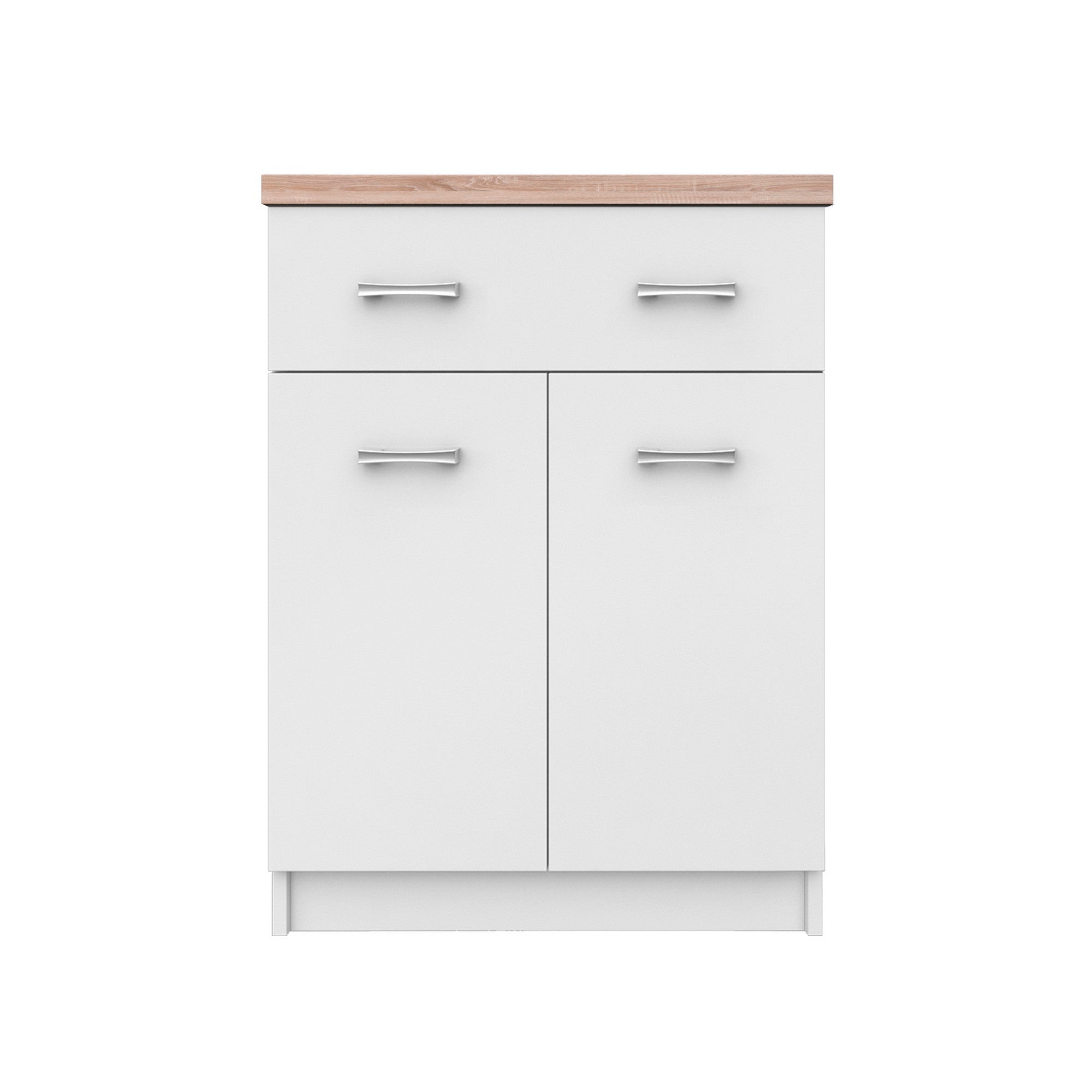 Comoda mica Top Mix, cu sertar si 2 usi, alb/stejar sonoma, 60x33x85 cm