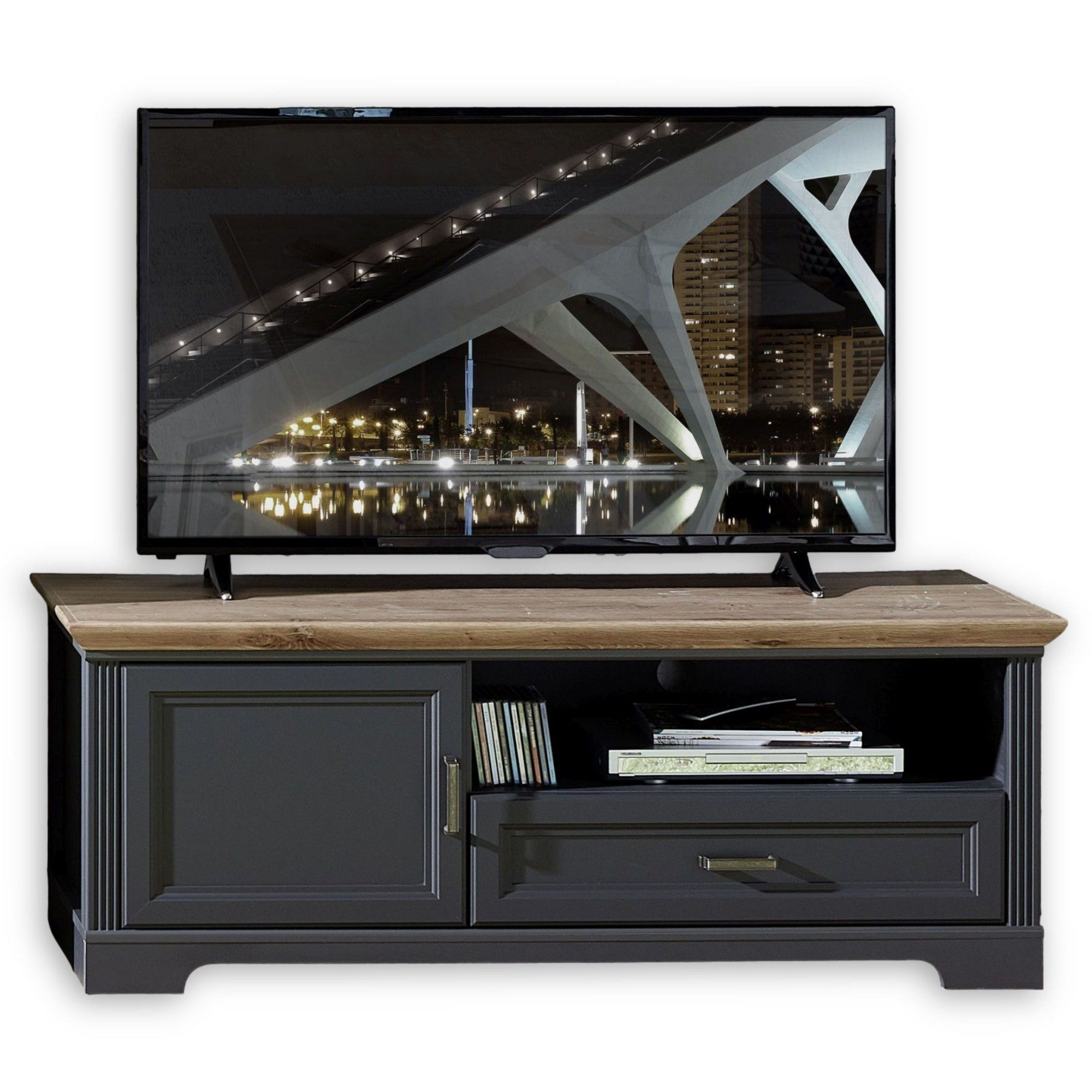 COMODA TV JASMIN, GRI GRAFIT/STEJAR ARTISAN, PAL, 143X51X54 CM