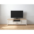 Comoda TV LOKSA, alb/stejar, PAL laminat, 160x44x51 cm