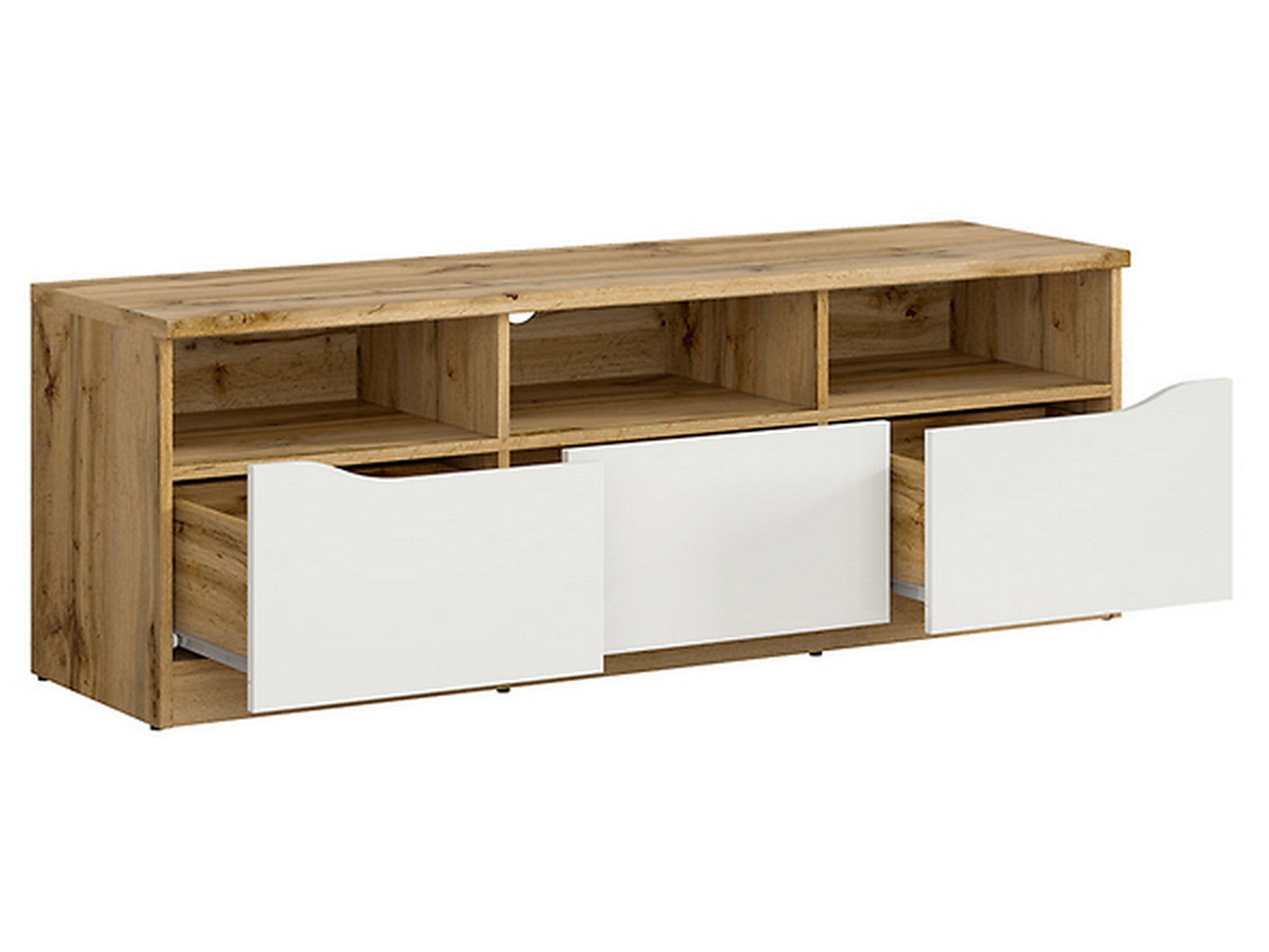 Comoda TV Nuis cu 3 sertare, alb lucios, 39.5X135X47.5 cm