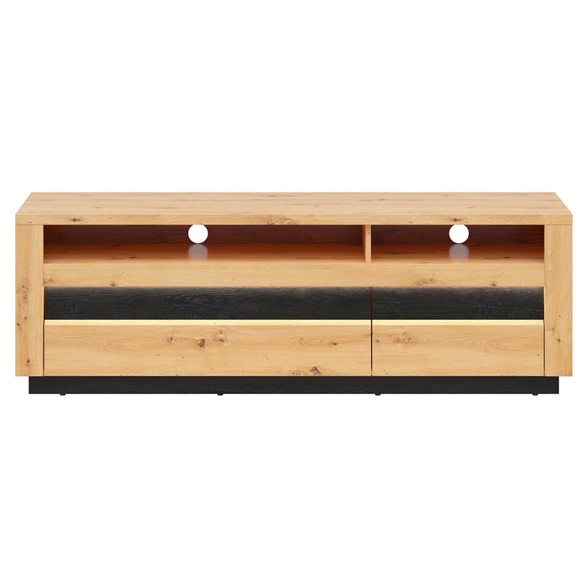 COMODA TV OSTIA, STEJAR ARTIZANAL/NEGRU, PAL/MDF, CU ILUMINARE LED, 161X48X53.5 CM