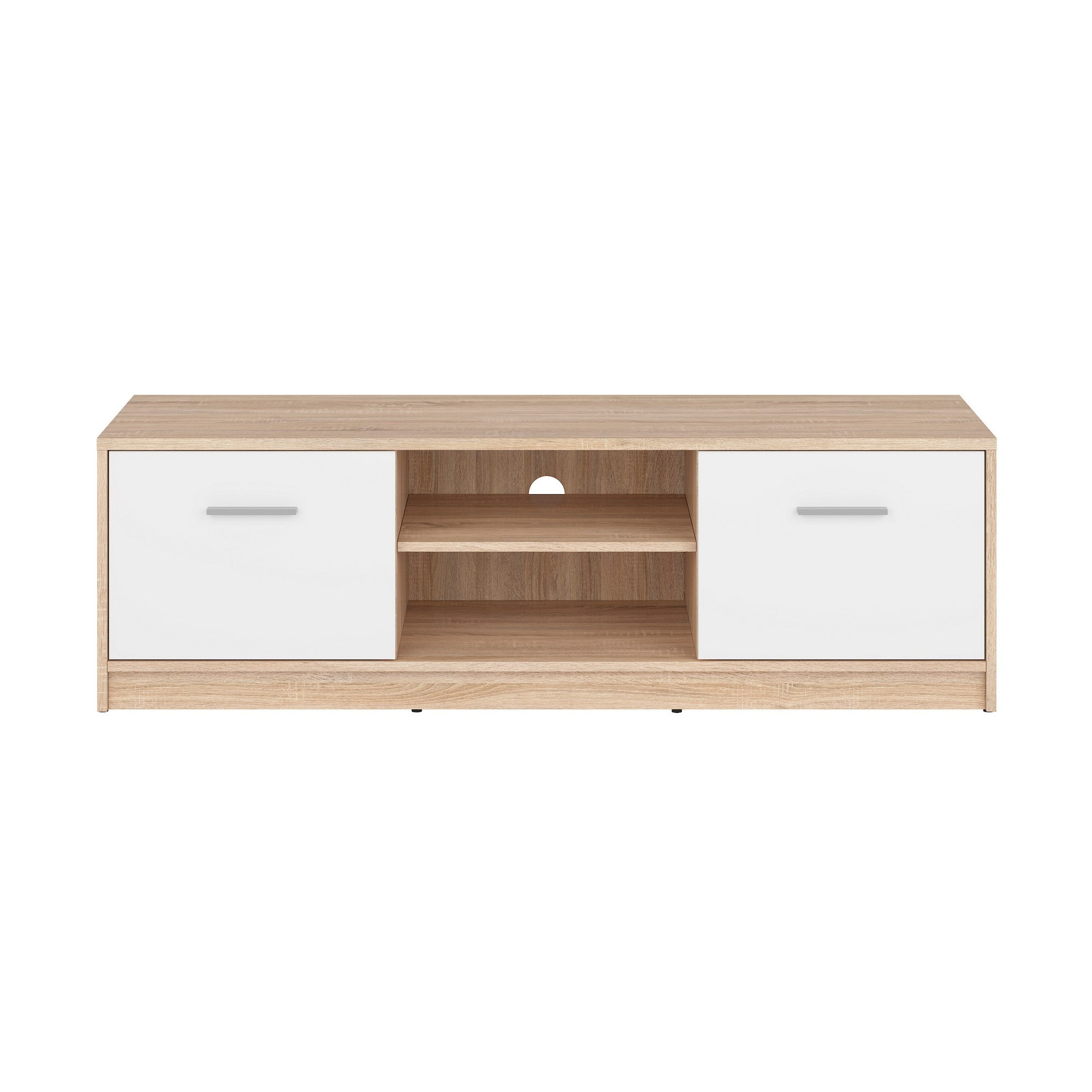 DE CE SA ALEGI COMODA TV SIMPLA NEPO PLUS RTV2D, CARCASA STEJAR SONOMA CU FRONTURI ALBE, STRUCTURA DIN PAL, 138.5X46.5X42.5 CM LXAXH?