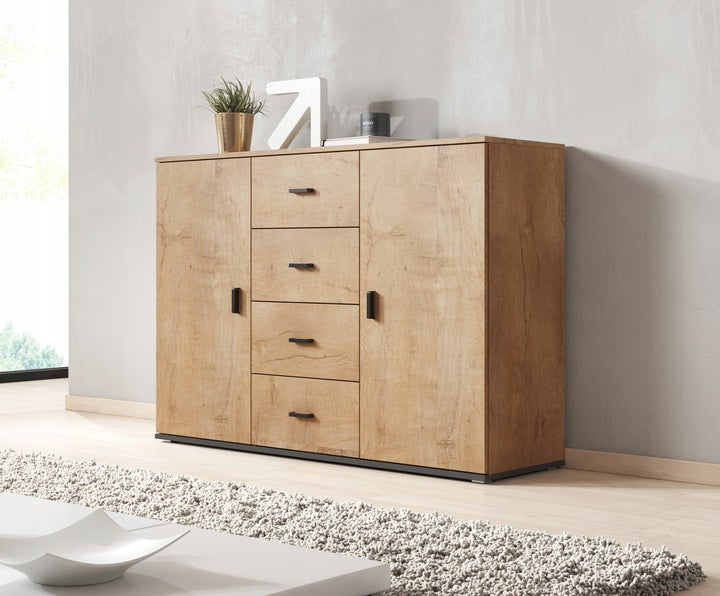 Comoda UNI, stejar/negru, 132x38x92 cm