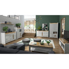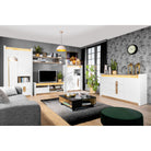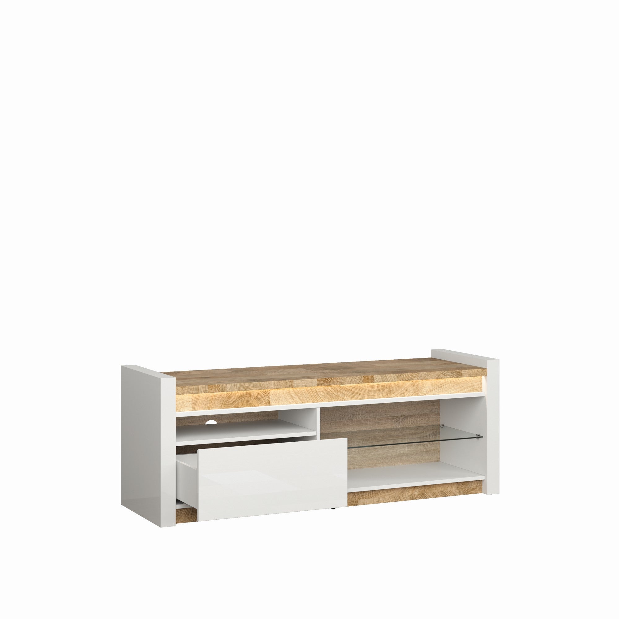 Comode TV Alameda, alb/stejar, 147x46x55 cm