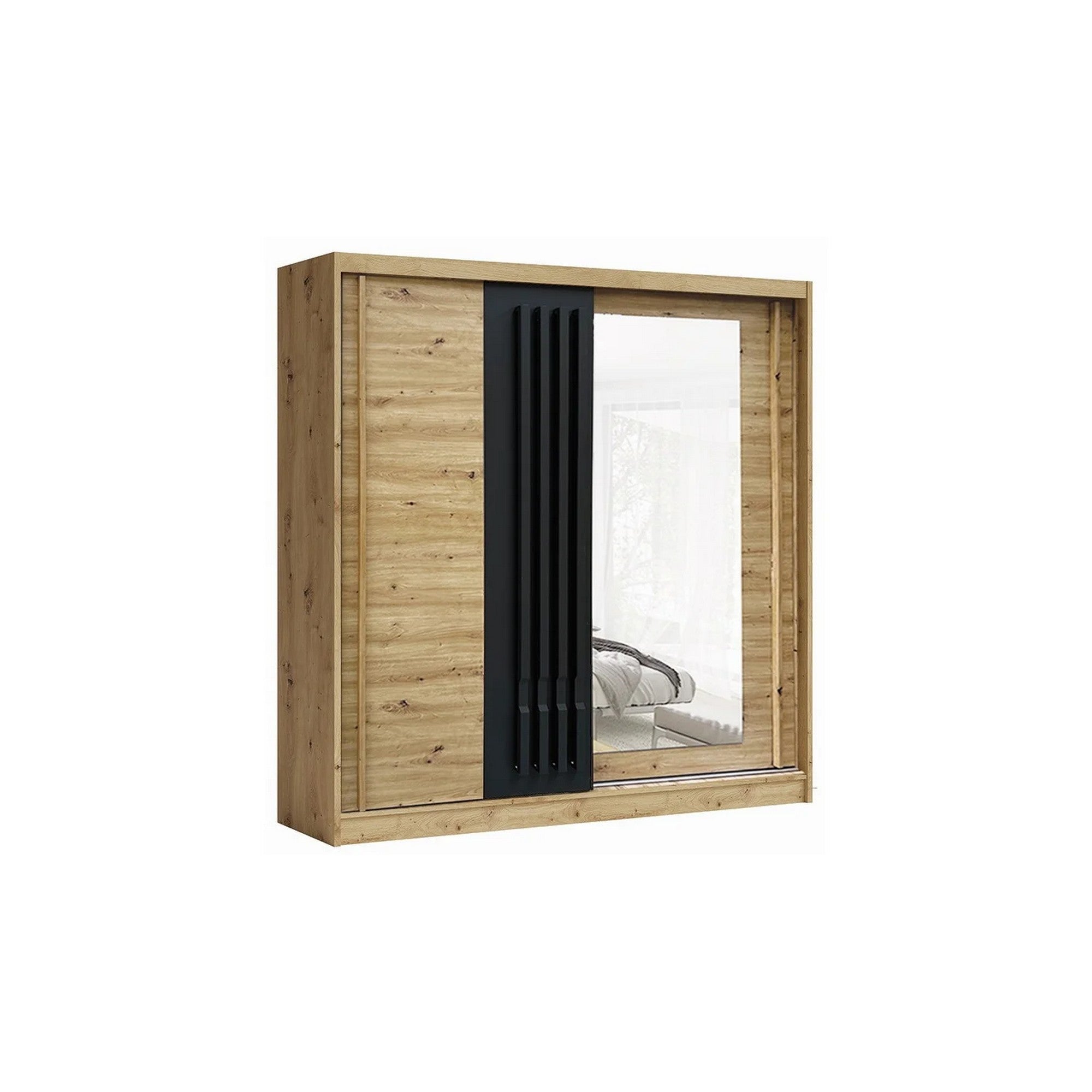 DULAP AVANTGARDE AV5-20, STEJAR ARTISAN/GRI GRAFIT, PAL/MDF, CU 2 USI, CU OGLINDA, 200X59X215 CM
