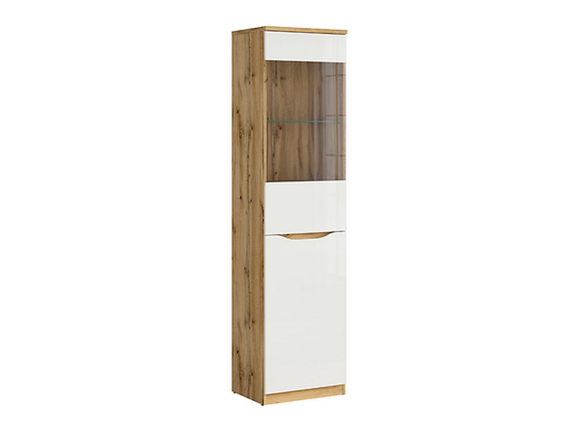Dulap cu vitrina si 2 usi Nuis, alb lucios, 39.5X50X197.5 cm
