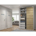 Dulap FLEX, alb/stejar, PAL, cu 2 usi si oglinda, 150x66x240 cm