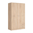 Deoarece aceste dulapuri haine lemn natur fac parte din colecția Nepo Plus si atrag cu siguranță pe iubitorii de aranjamente moderne care prețuiesc forme simple. Dormitorul spațios, modern, Nepo Plus rezolva definitiv problemele legate de depozitarea articolelor de îmbrăcăminte. La dispoziția ta ai doua compartimente mari, cu un raft mare și o bară pentru umerase, două sertare la îndemână și un compartiment mai ingust dotat si el cu bara de haine dar pe care poti sa il folosesti si altfel.