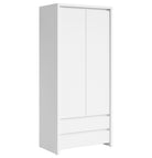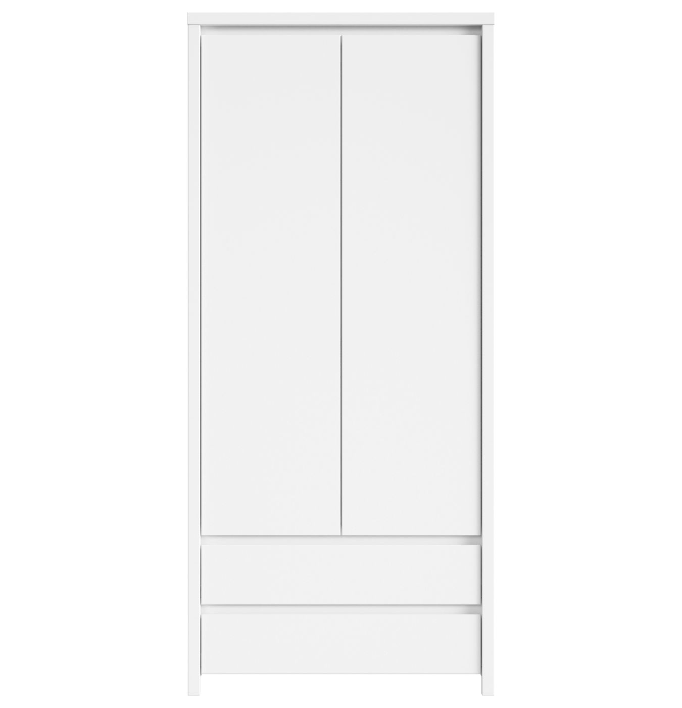 Dulapul are două uși și un spațiu de depozitare funcțional. În interior există o șină pentru haine. Partea de jos a mobilei are două sertare.
