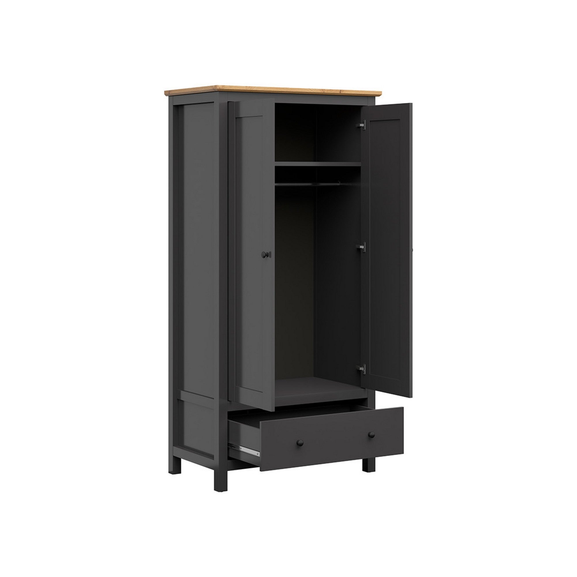 DULAP HESEN, GRI GRAFIT/STEJAR ARTIZANAL, PAL, 101X57X203 CM