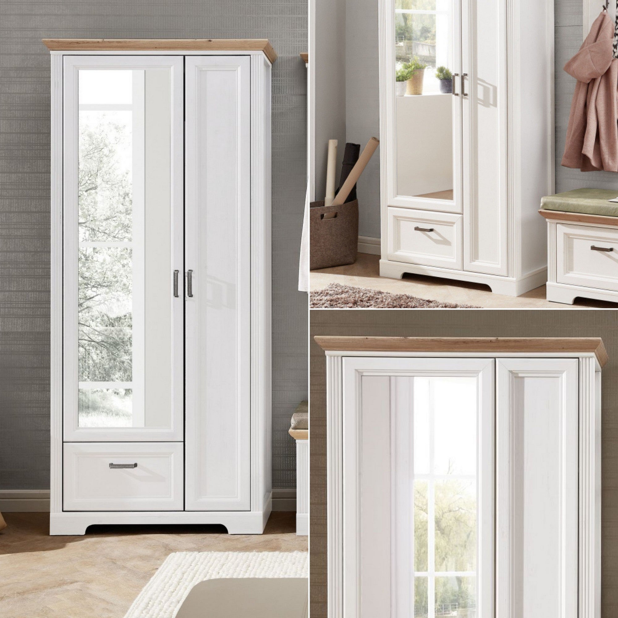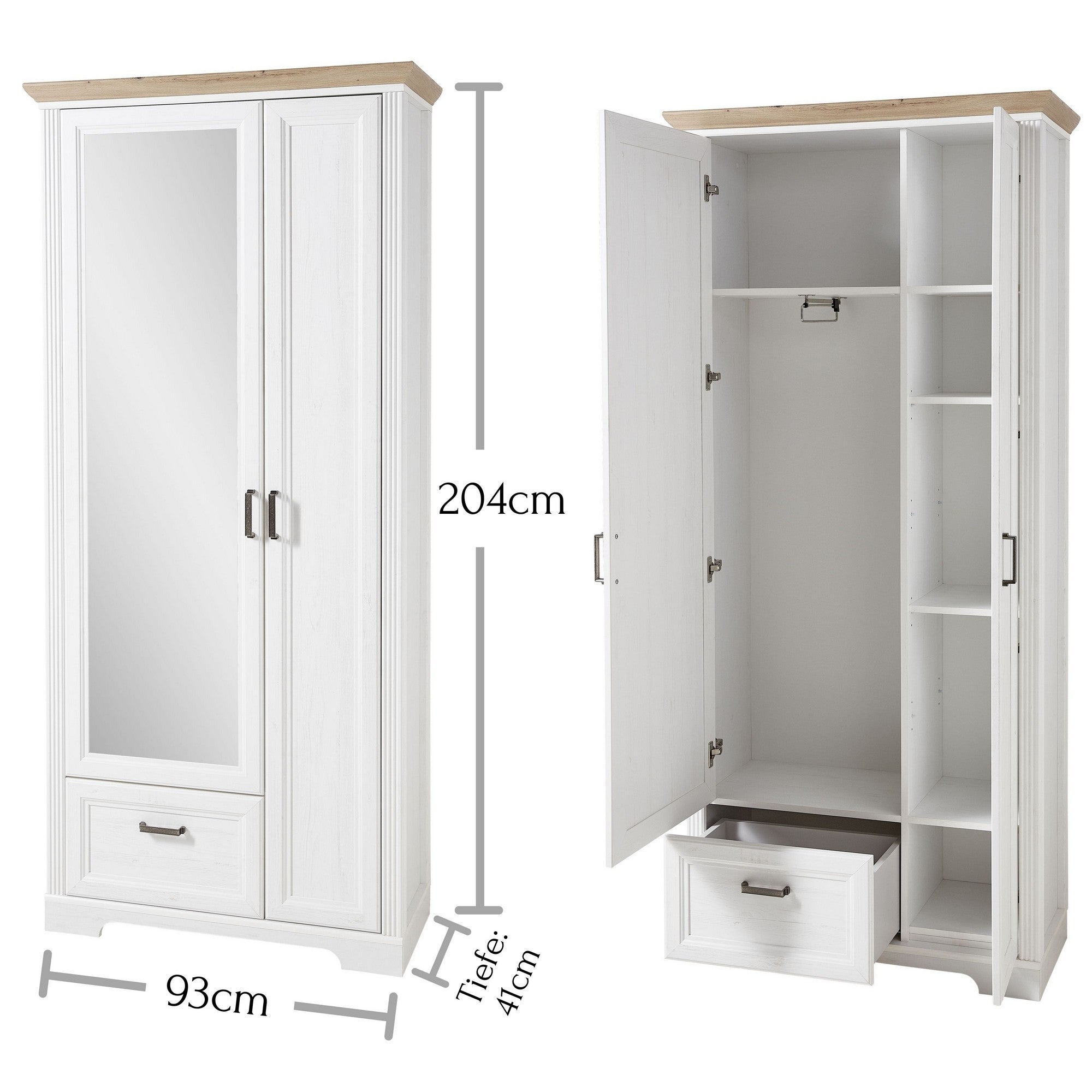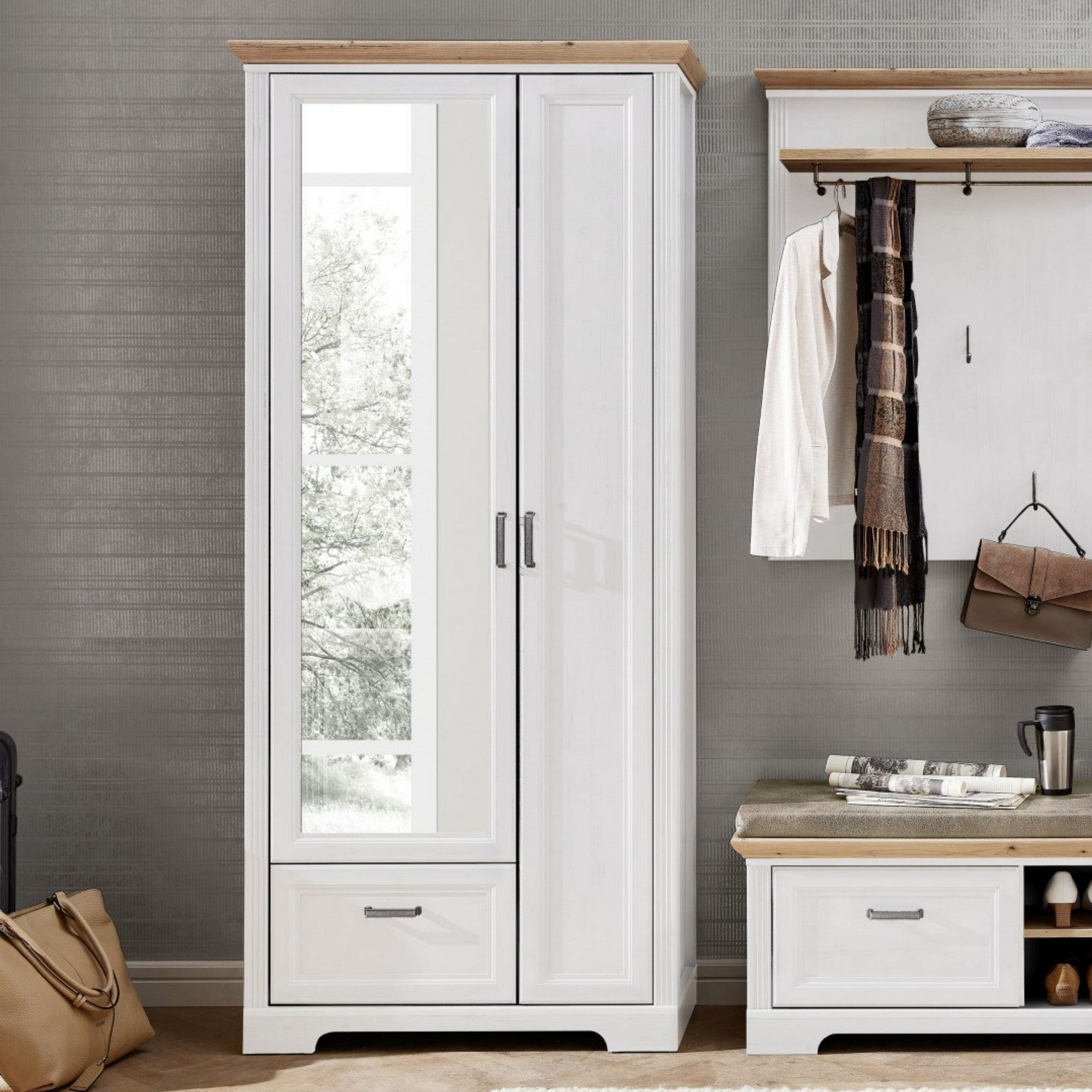 Dulap JASMIN, alb/stejar artisan, PAL, cu 2 usi si un sertar, 93x41x204 cm