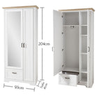 DULAP JASMIN, ALB/STEJAR ARTISAN, PAL, CU 2 USI SI UN SERTAR, 93X41X204 CM