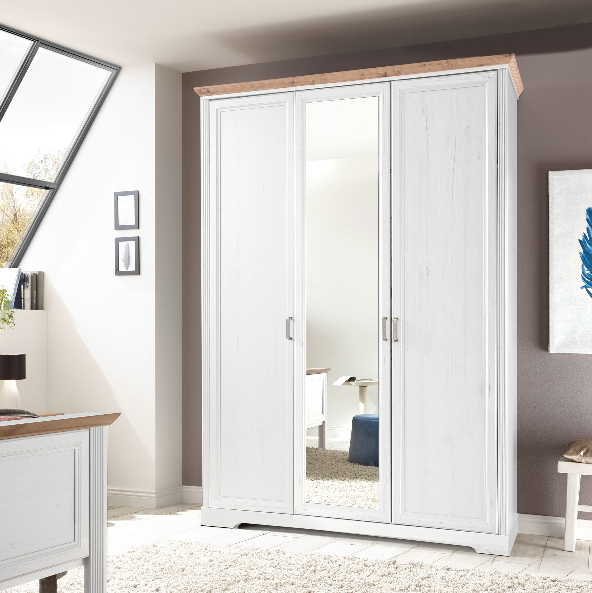 DULAP JASMIN, ALB/STEJAR ARTISAN, PAL, CU 3 USI, 164X64X220 CM