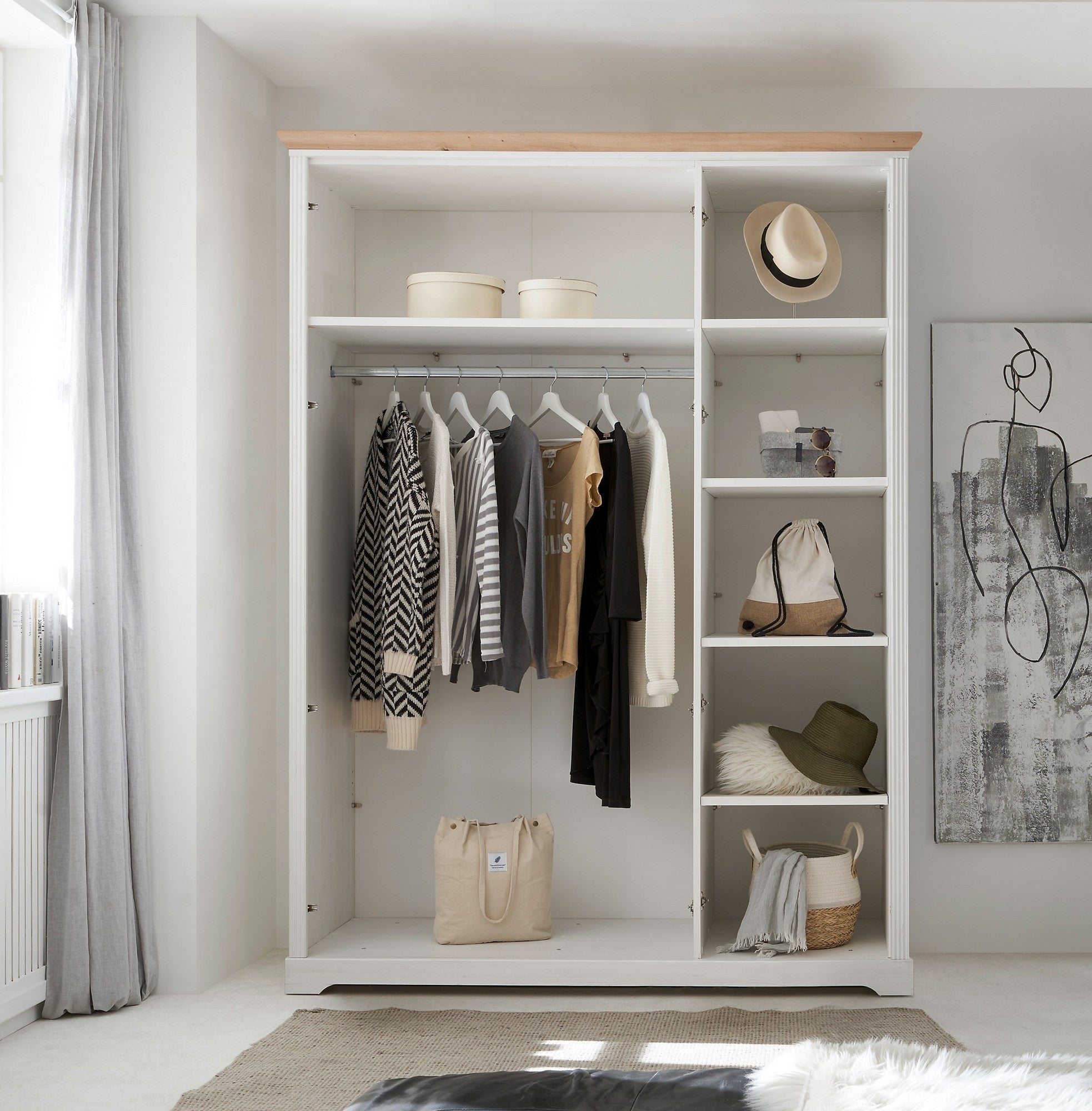Compartimentare cu rafturi si bara de umerase