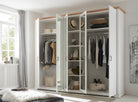 Dulap JASMIN, alb/stejar artisan, PAL, cu 5 usi, 264x64x220 cm