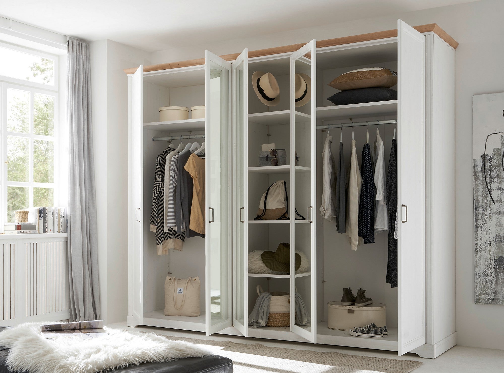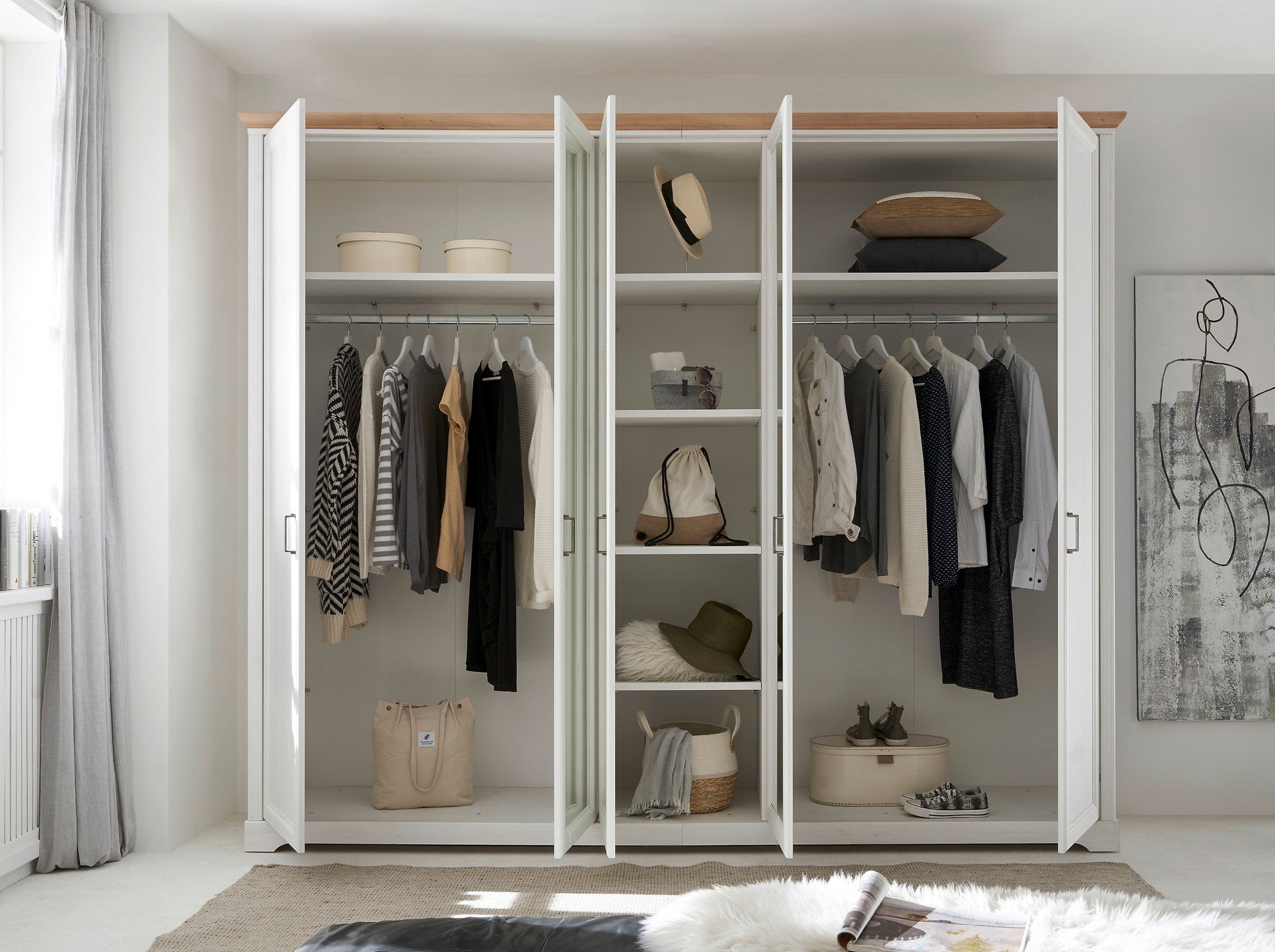 DULAP JASMIN, ALB/STEJAR ARTISAN, PAL, CU 5 USI, 264X64X220 CM