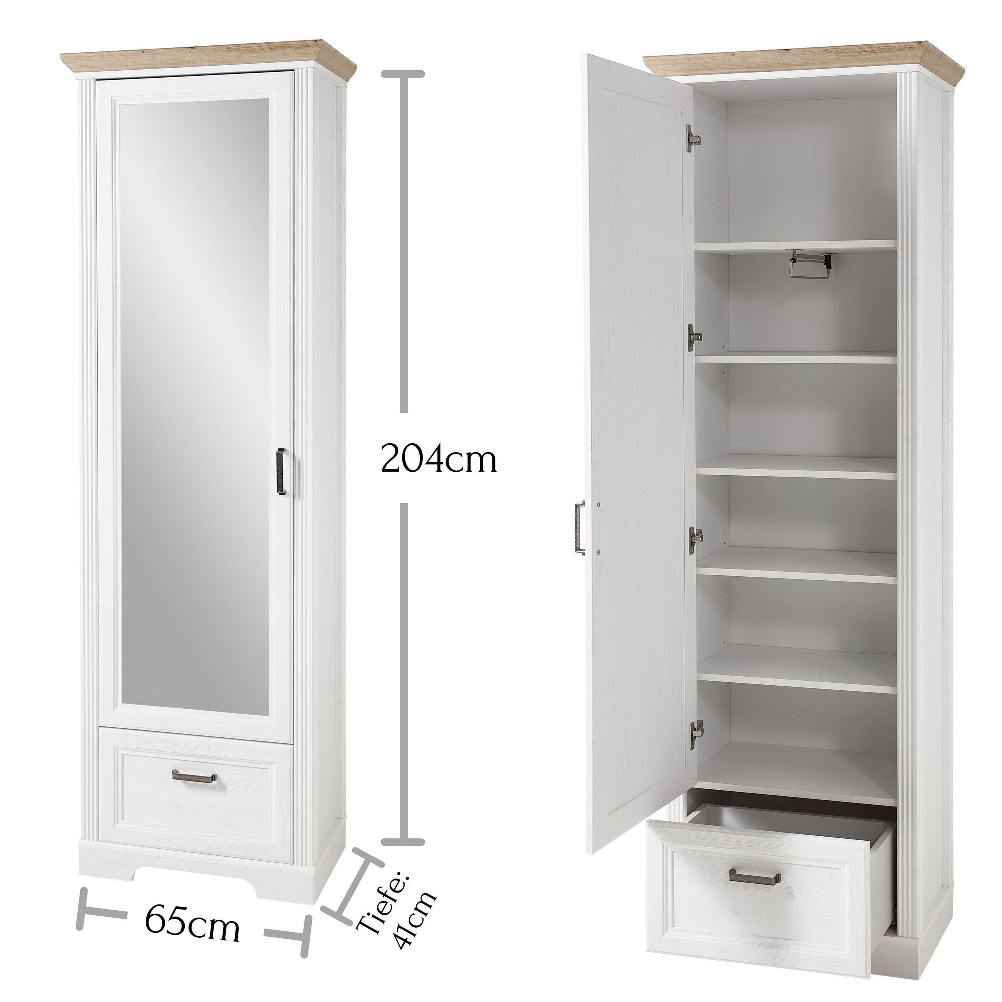 DULAP JASMIN, ALB/STEJAR ARTISAN, PAL, CU O USA SI UN SERTAR, 65X41X204 CM