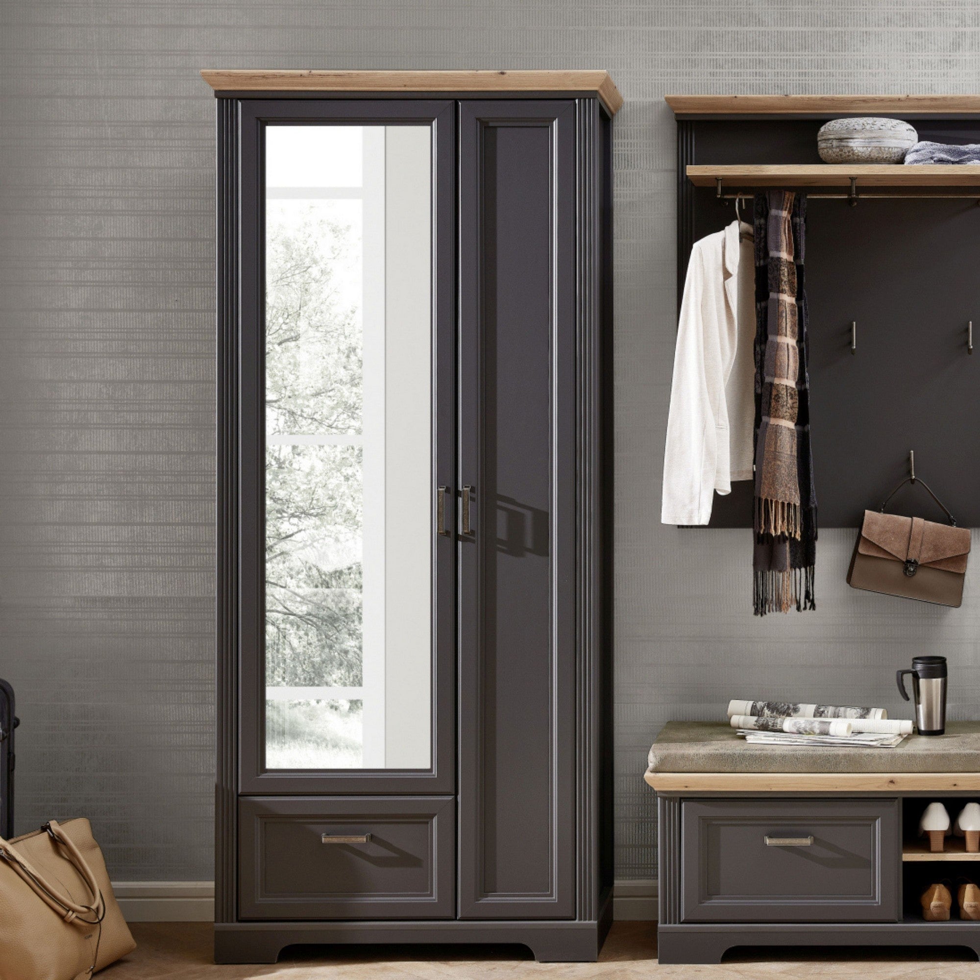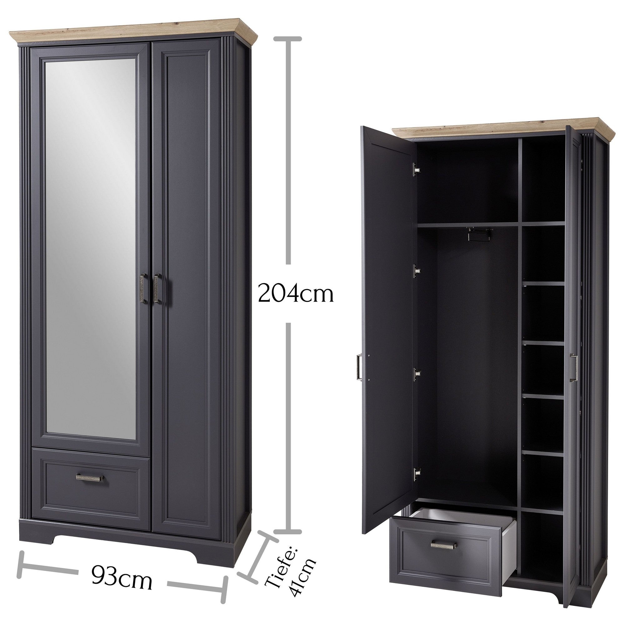 Dulap JASMIN, gri grafit/stejar artisan, PAL, cu 2 usi si un sertar, 93x41x204 cm