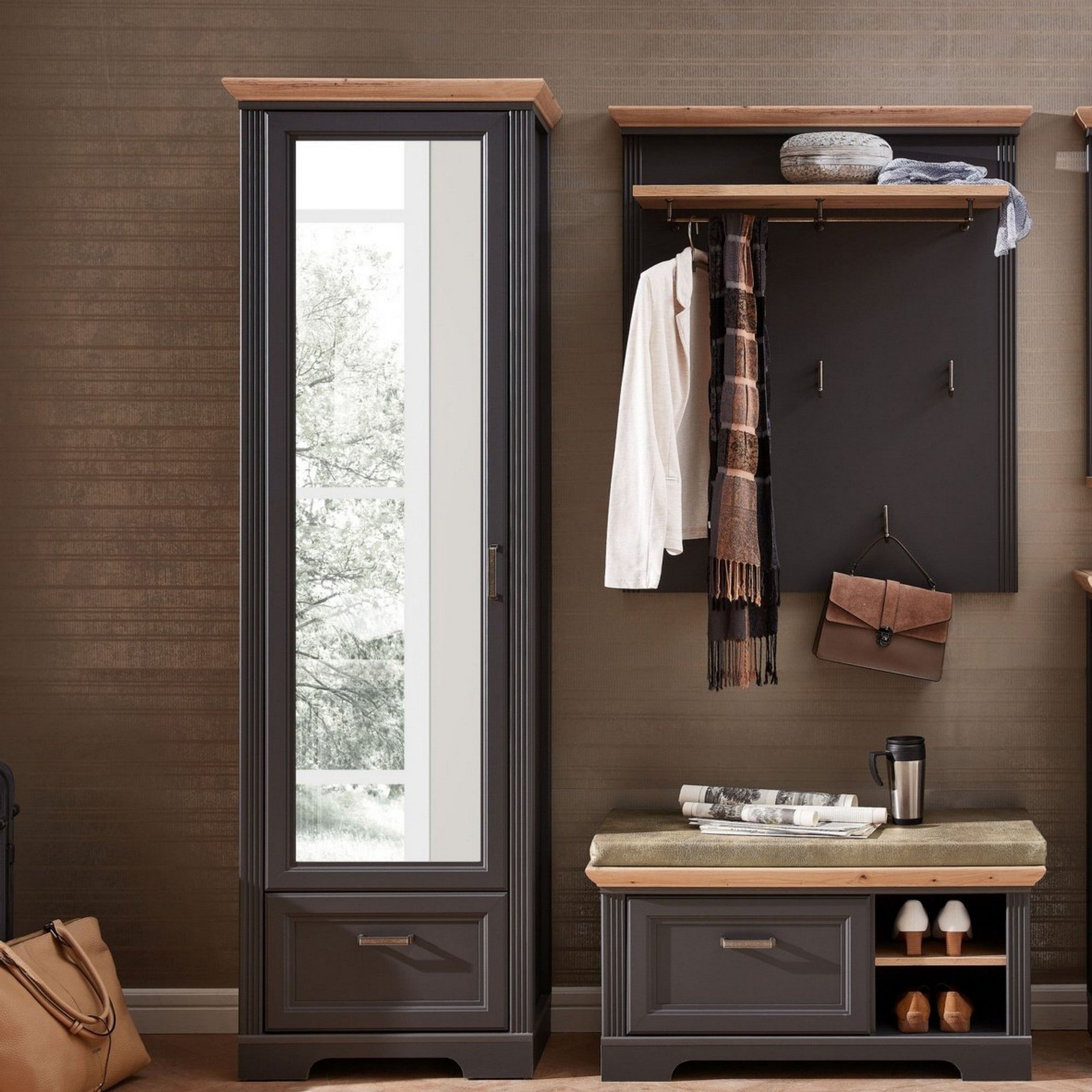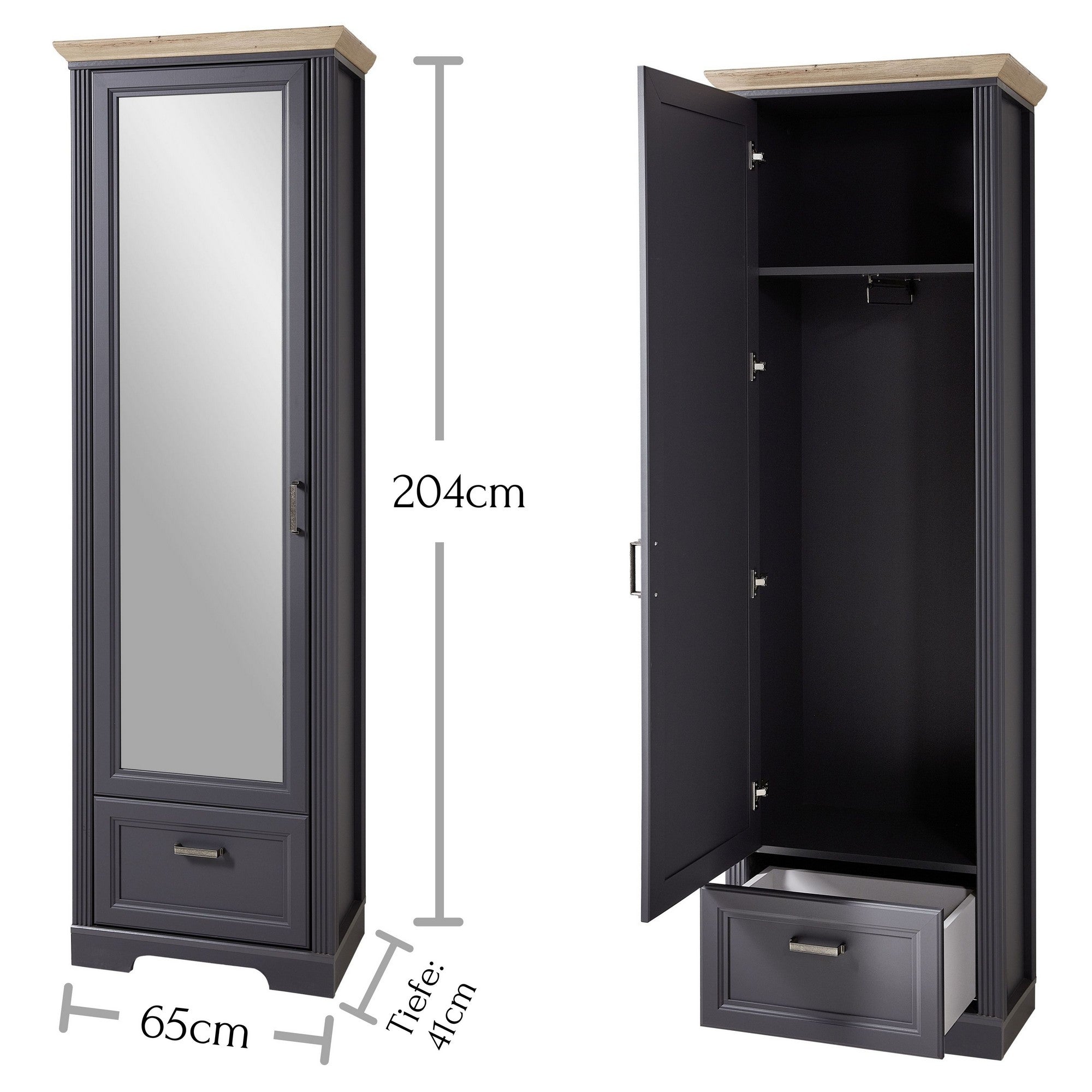 DULAP JASMIN, GRI GRAFIT/STEJAR ARTISAN, PAL, CU O USA SI UN SERTAR, 65X41X204 CM
