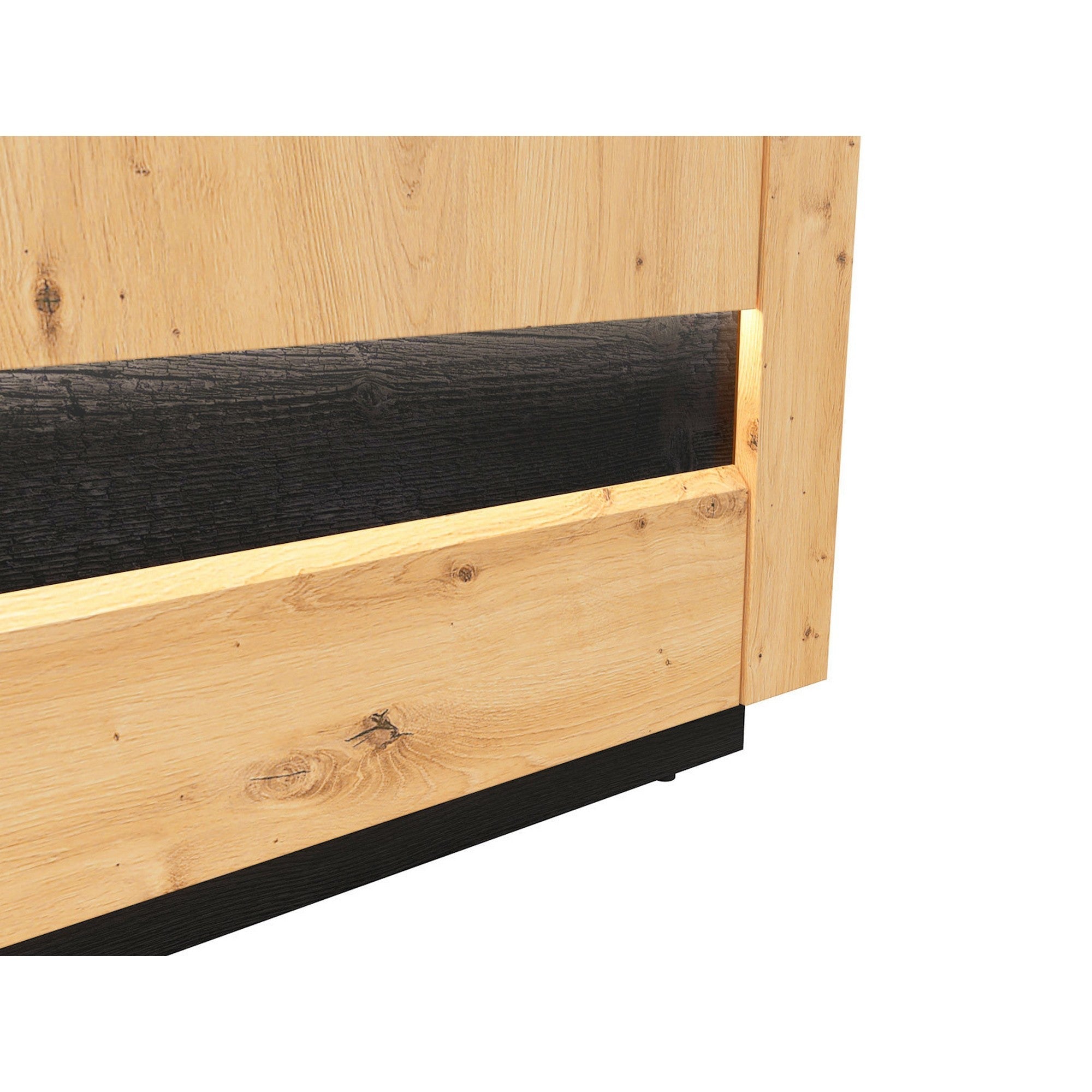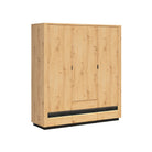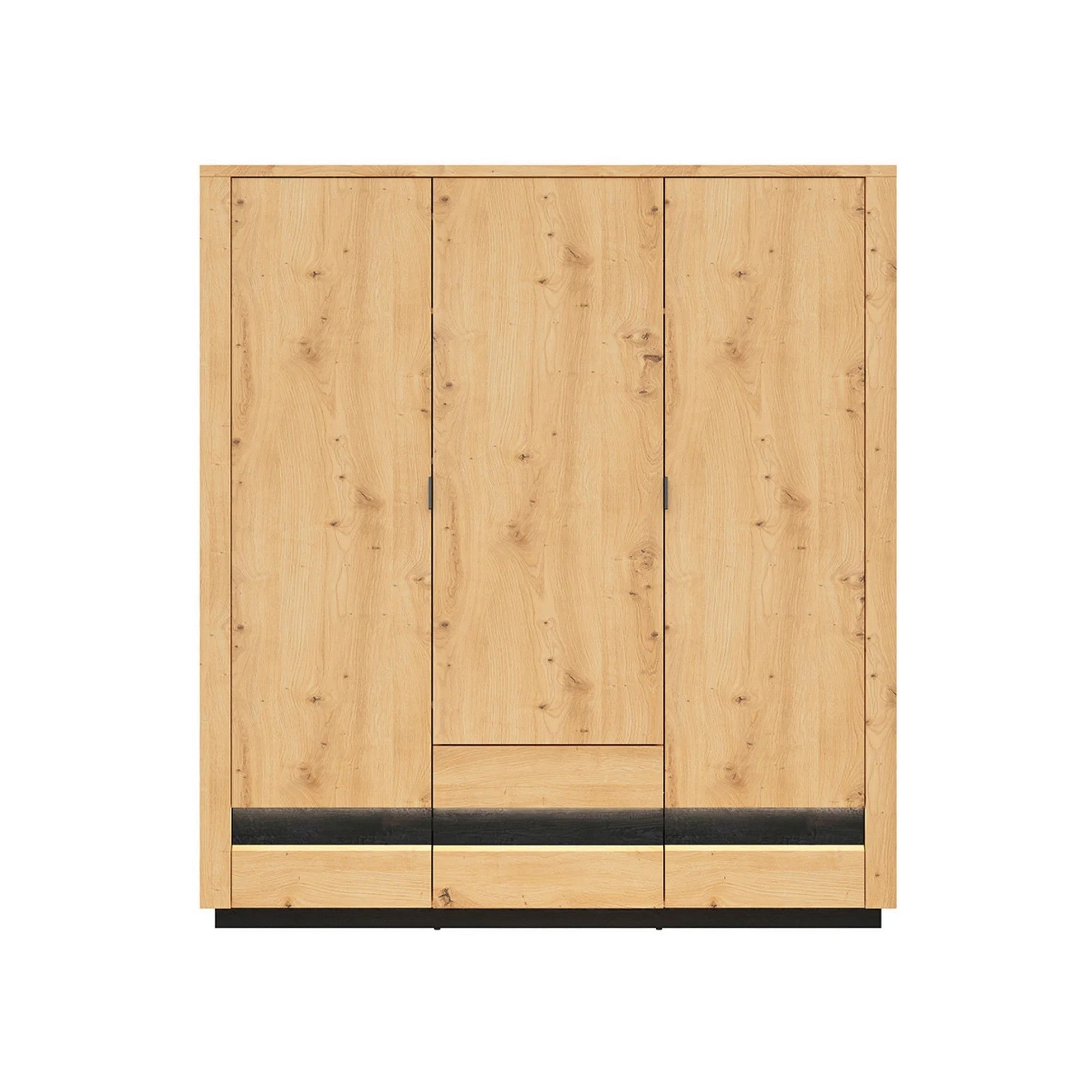 DULAP OSTIA, STEJAR ARTIZANAL/NEGRU, PAL/MDF, CU ILUMINARE LED, 180.5X56X199 CM