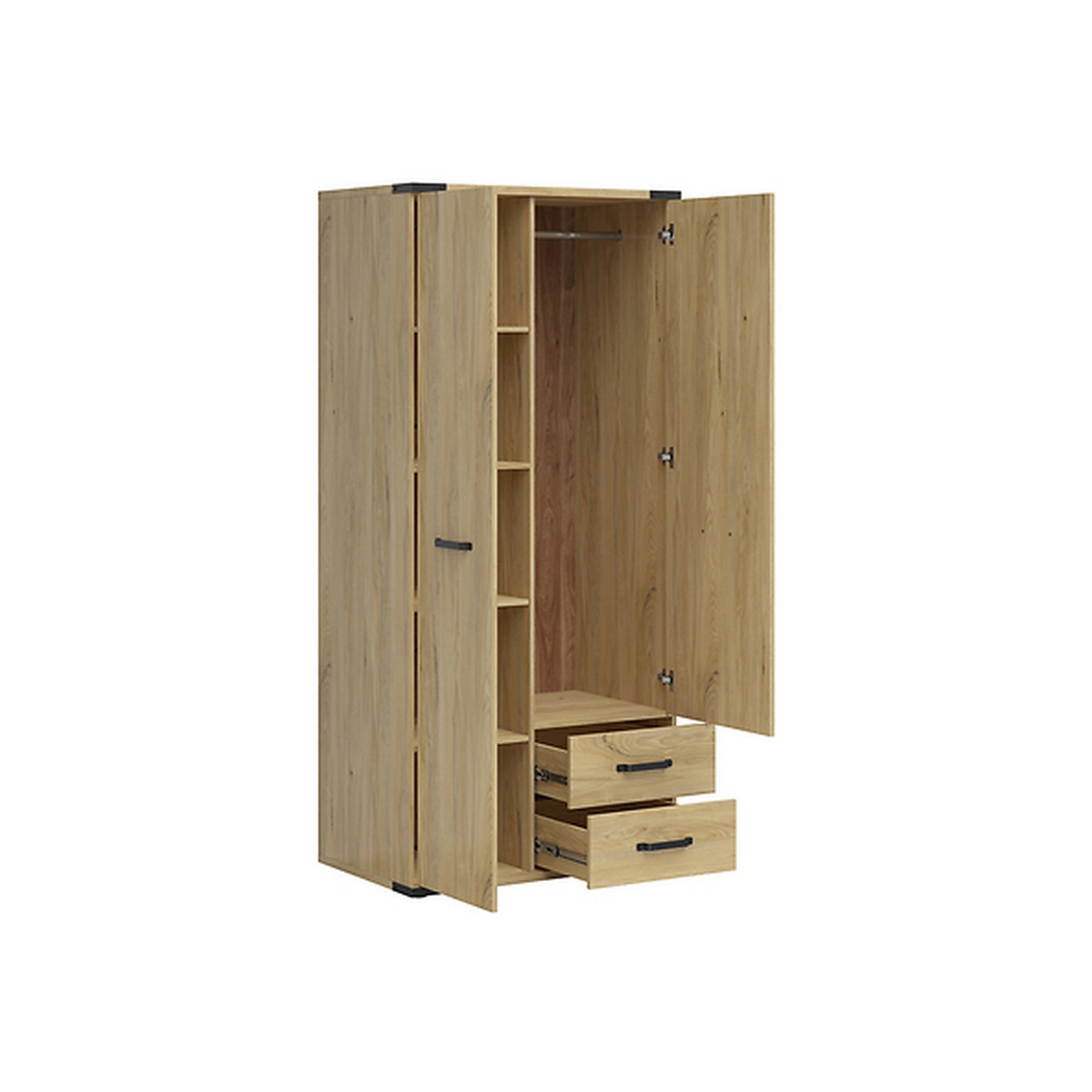 DULAP PENTRU HAINE LARA, FRASIN DE BELARUS CU INSERTII NEGRE, PAL, 90x56x197,5 CM