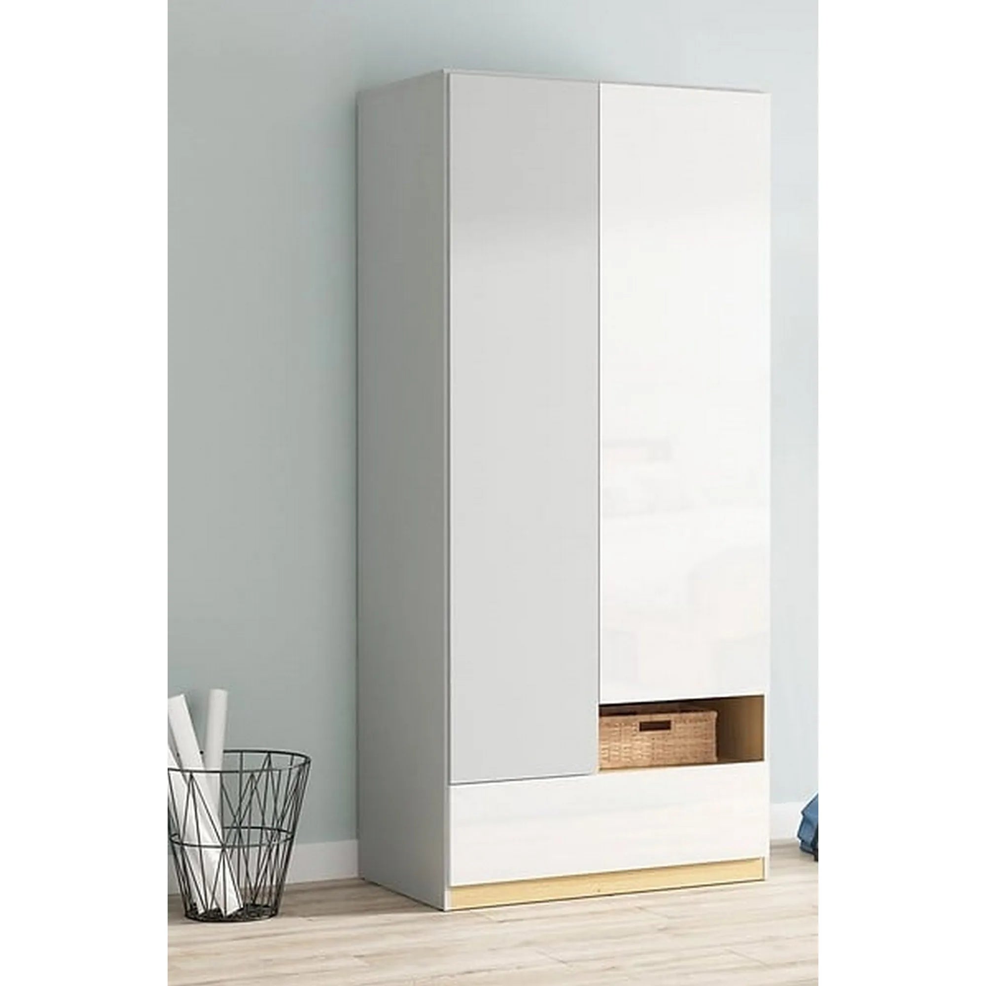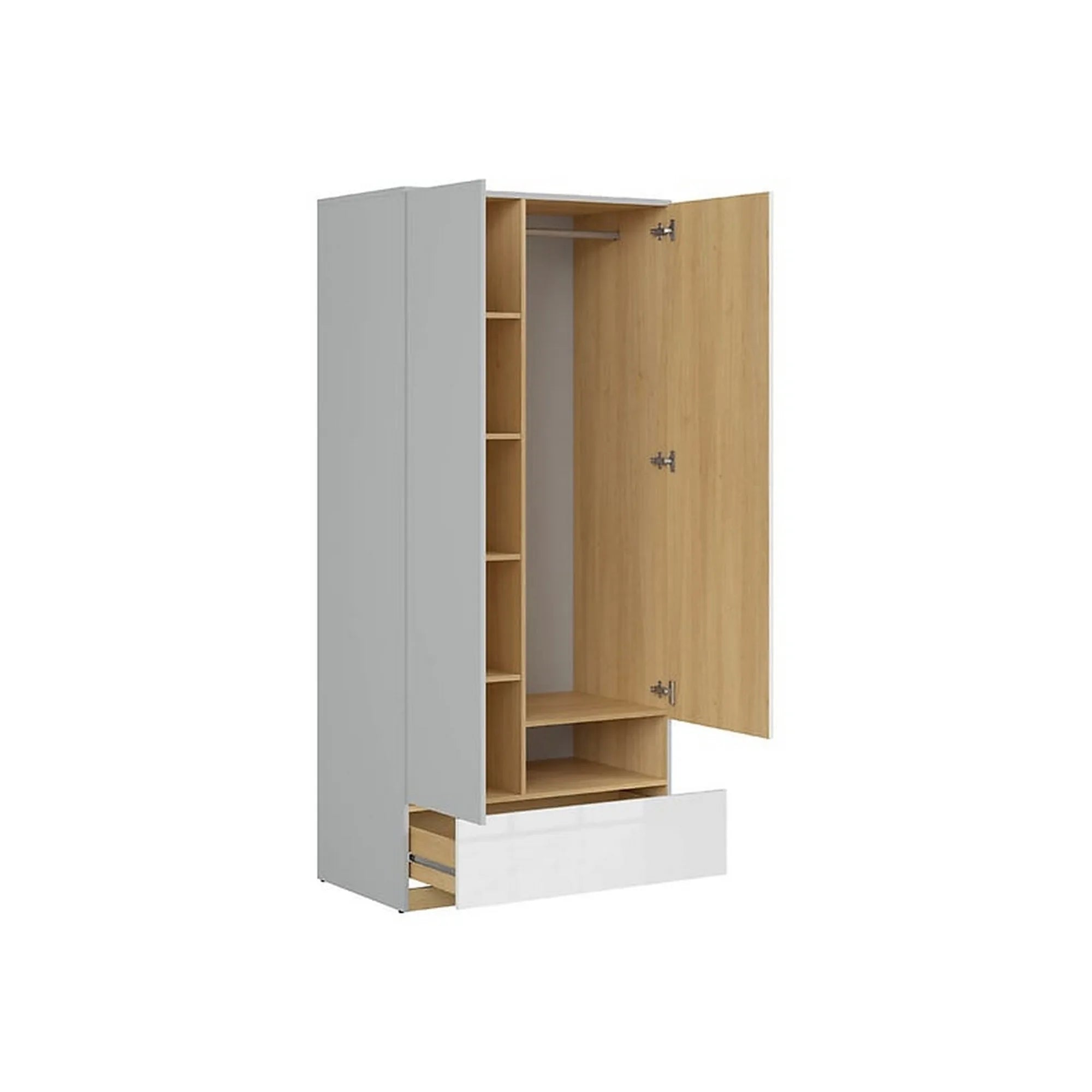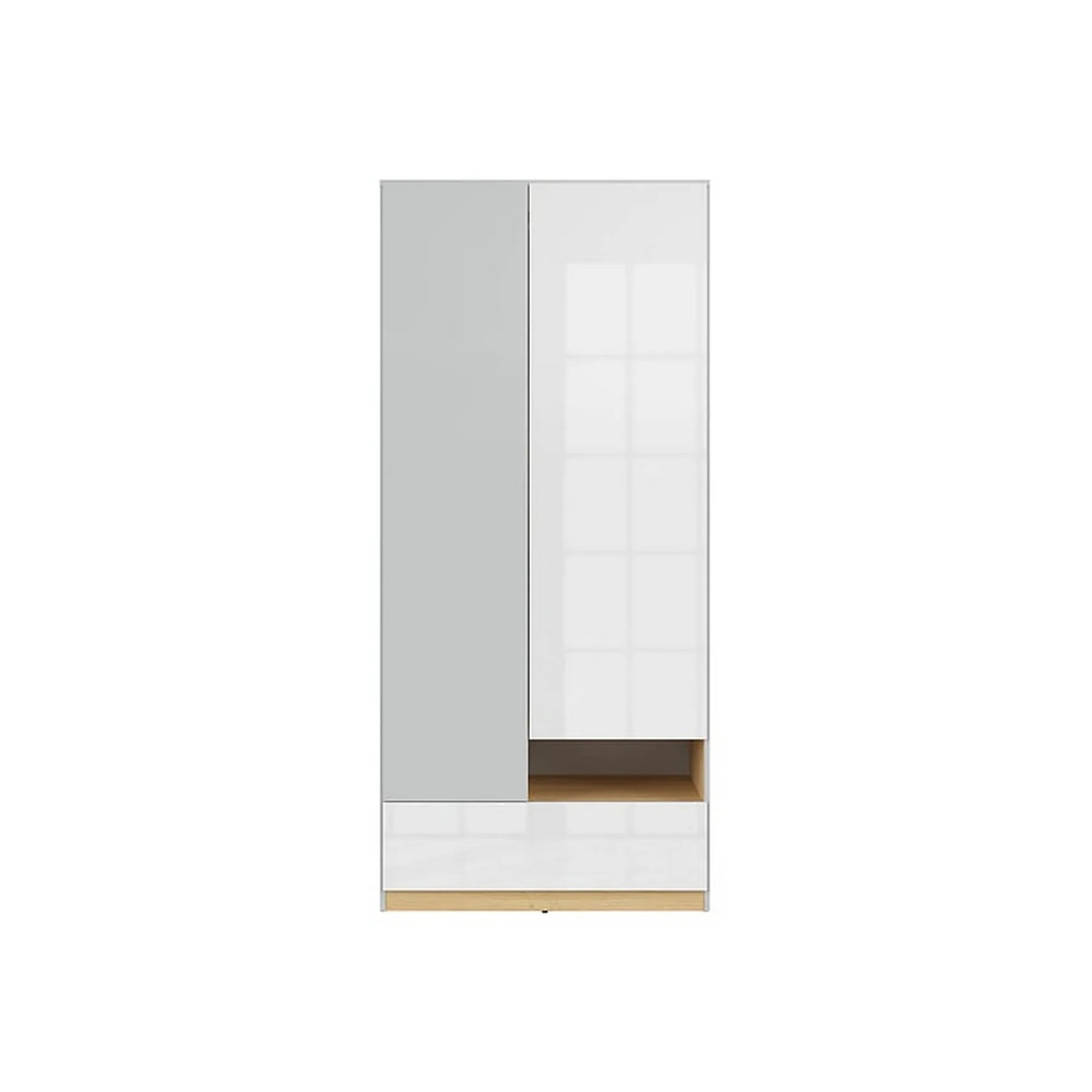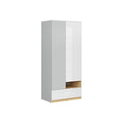 Dulap NANDU, gri deschis/ alb lucios, PAL, cu 2 usi si sertar, 90x55x201 cm