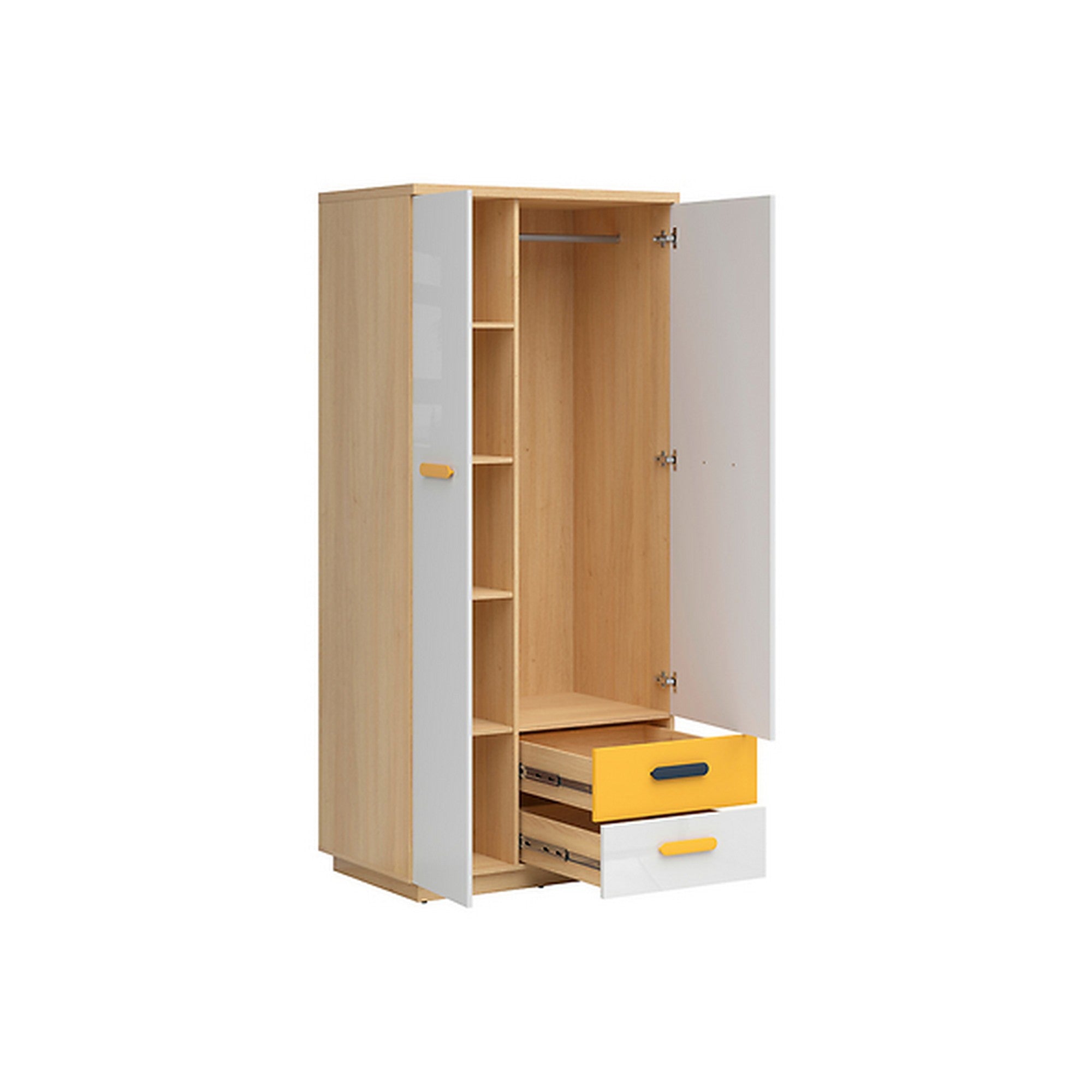DULAP WESKER CU SERTARE PENTRU COPII, PAL, SONOMA/ALB CU INSERTII GALBENE, 90x56,5x199,5 CM