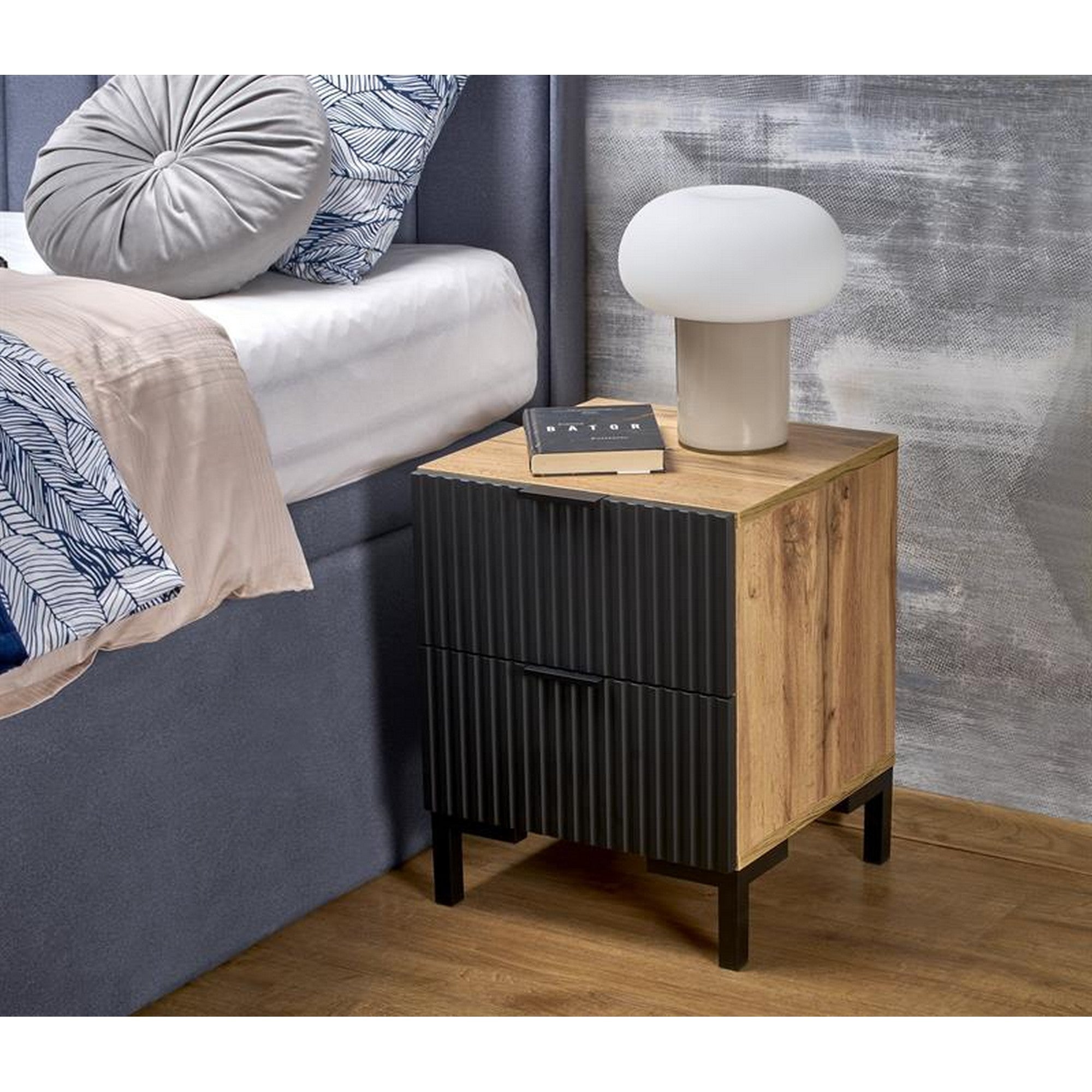 Noptiera NELA, stejar/negru, PAL laminat, 40x40x52 cm