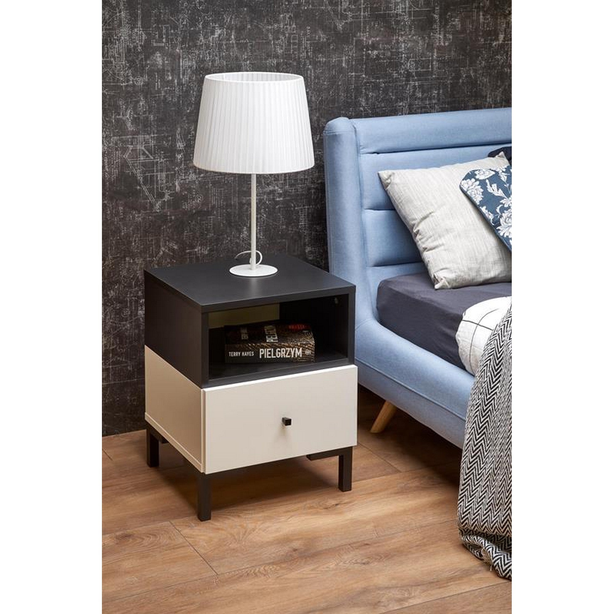 Noptiera SILVIA, alb/negru, PAL, 40x40x52 cm