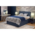 Pat 160x200 ASENTO, albastru, stofa catifelata - Element 13, cu spatiu depozitare, 162x210x121 cm