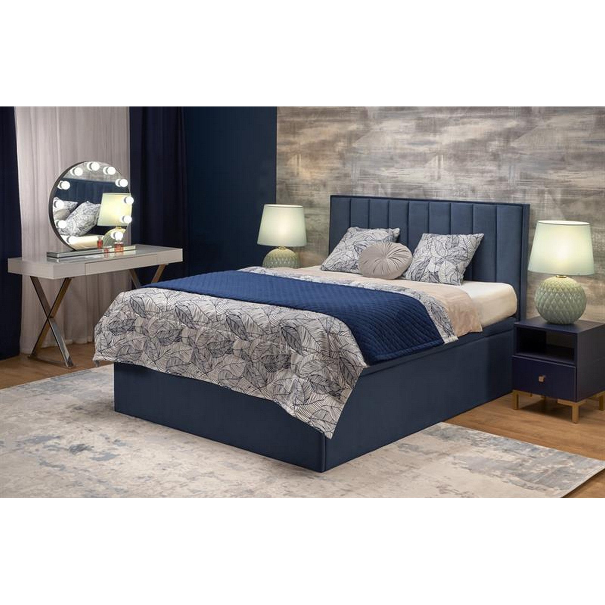 PAT 160X200 ASENTO, ALBASTRU, STOFA CATIFELATA - ELEMENT 13, CU SPATIU DEPOZITARE, 162X210X121 CM